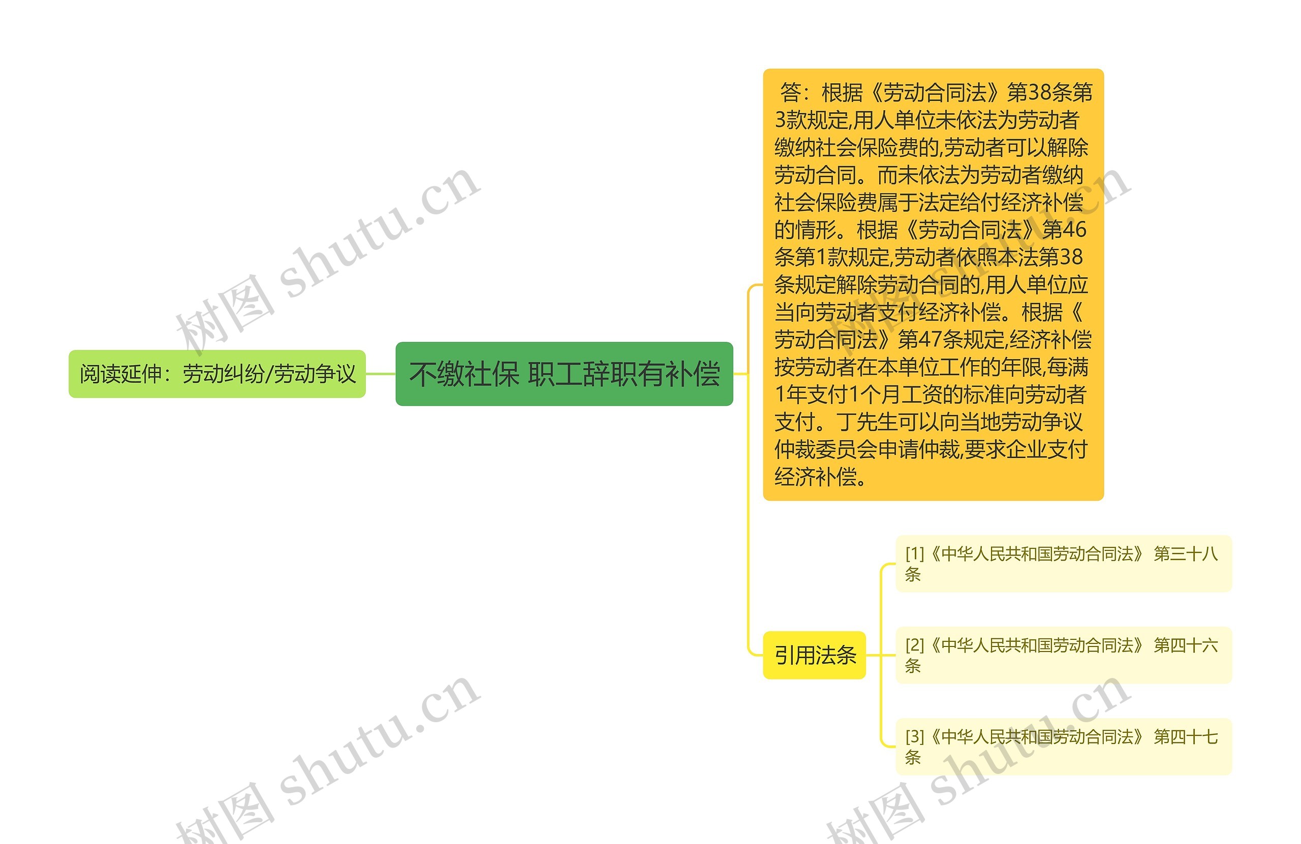树图思维导图提供《不缴社保 职工辞职有补偿》在线思维导图免费制作,点击“编辑”按钮,可对《不缴社保 职工辞职有补偿》进行在线思维导图编辑,本思维导图属于思维导图模板主题,文件编号是:af97ebd7e8bb862477c97c5555b2b3f1