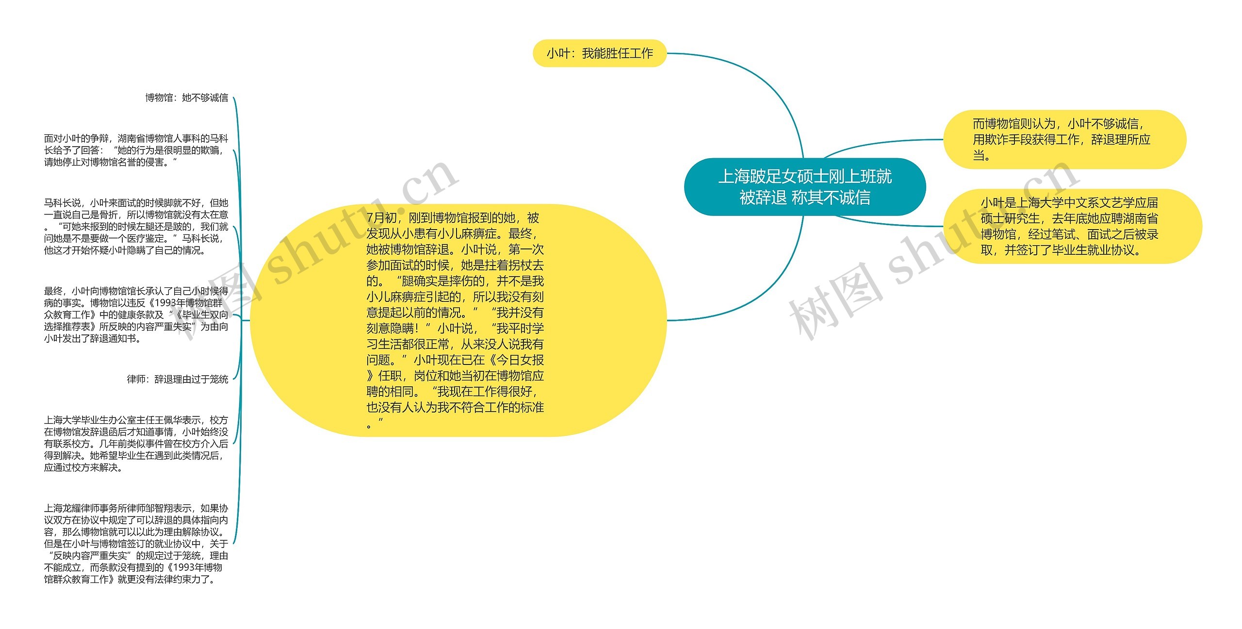最终,小叶向博物馆馆长承认了自己小时候得病的事实。博物馆以违反《1993年博物馆群众教育工作》中的健康条款及“《毕业生双向选择推荐表》所反映的内容严重失实”为由向小叶发出了辞退通知书。