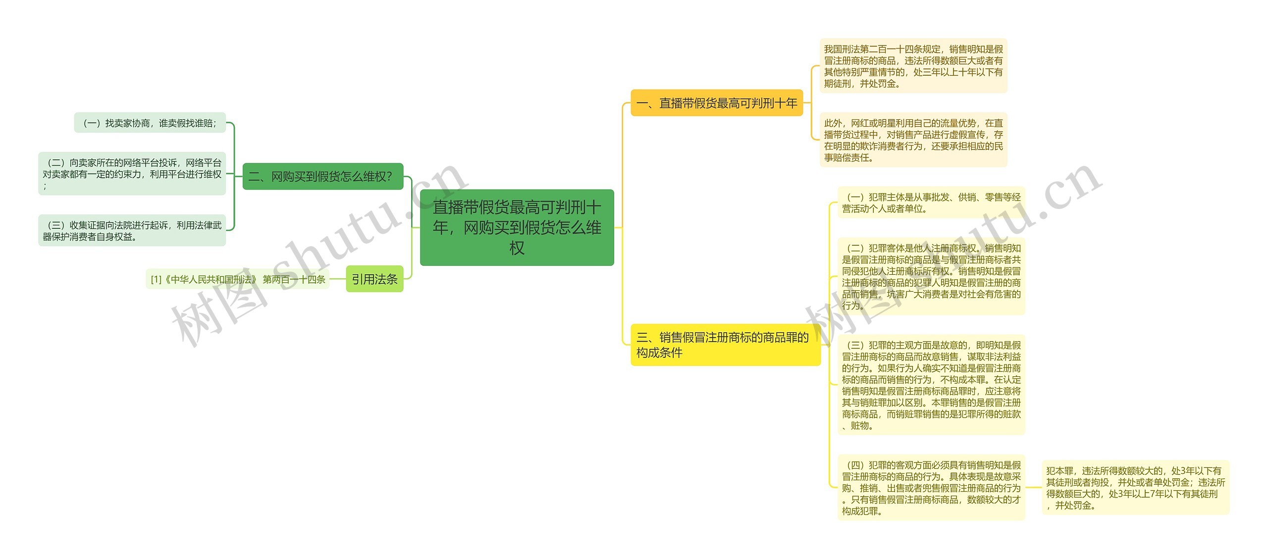 树图思维导图提供《直播带假货最高可判刑十年,网购买到假货怎么维权》在线思维导图免费制作,点击“编辑”按钮,可对《直播带假货最高可判刑十年,网购买到假货怎么维权》进行在线思维导图编辑,本思维导图属于思维导图模板主题,文件编号是:b5e69360eba083fae939f1e0340f1c41