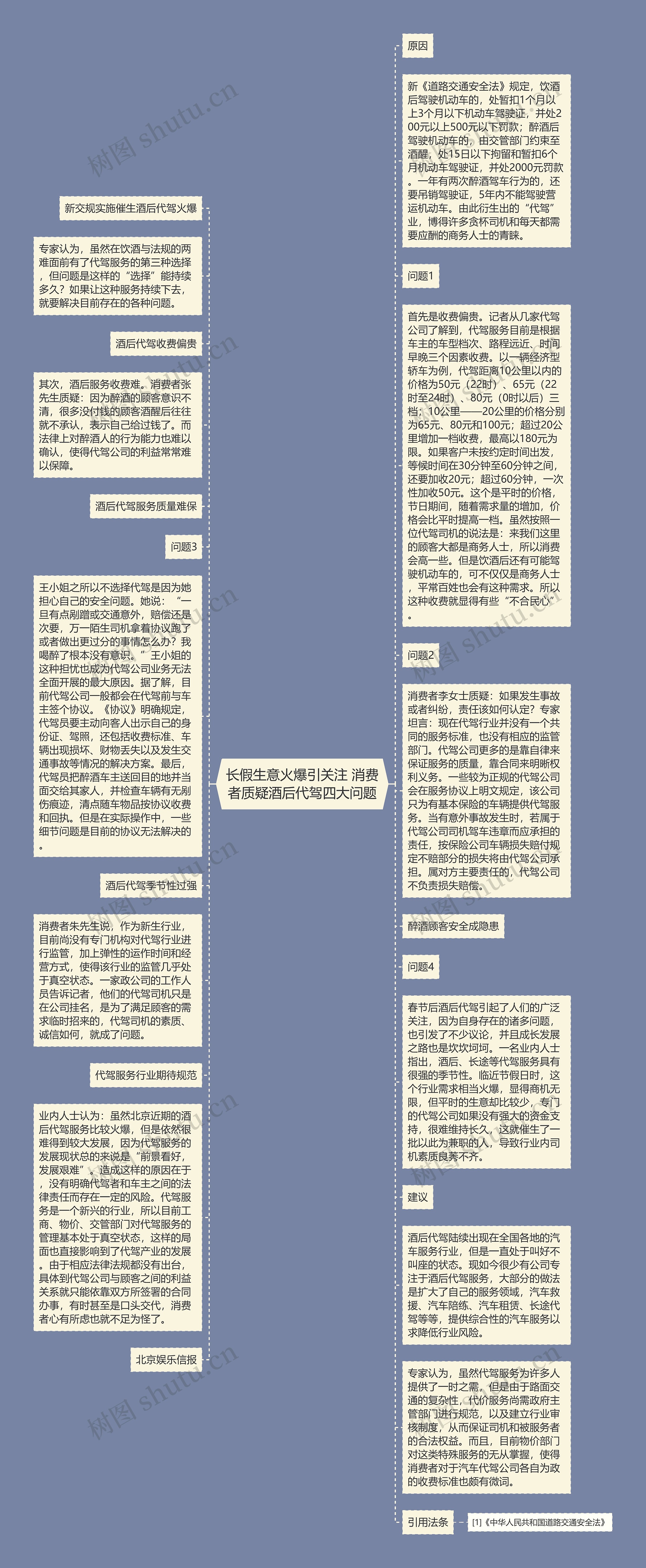 首先是收费偏贵。记者从几家代驾公司了解到,代驾服务目前是根据车主的车型档次、路程远近、时间早晚三个因素收费。以一辆经济型轿车为例,代驾距离10公里以内的价格为50元(22时)、65元(22时至24时)、80元(0时以后)三档;10公里——20公里的价格分别为65元、80元和100元;超过20公里增加一档收费,最高以180元为限。如果客户未按约定时间出发,等候时间在30分钟至60分钟之间,还要加收20元;超过60分钟,一次性加收50元。这个是平时的价格,节日期间,随着需求量的增加,价格会比平时提高一档。虽然按照一位代驾司机的说法是:来我们这里的顾客大都是商务人士,所以消费会高一些。但是饮酒后还有可能驾驶机动车的,可不仅仅是商务人士,平常百姓也会有这种需求。所以这种收费就显得有些“不合民心”。
