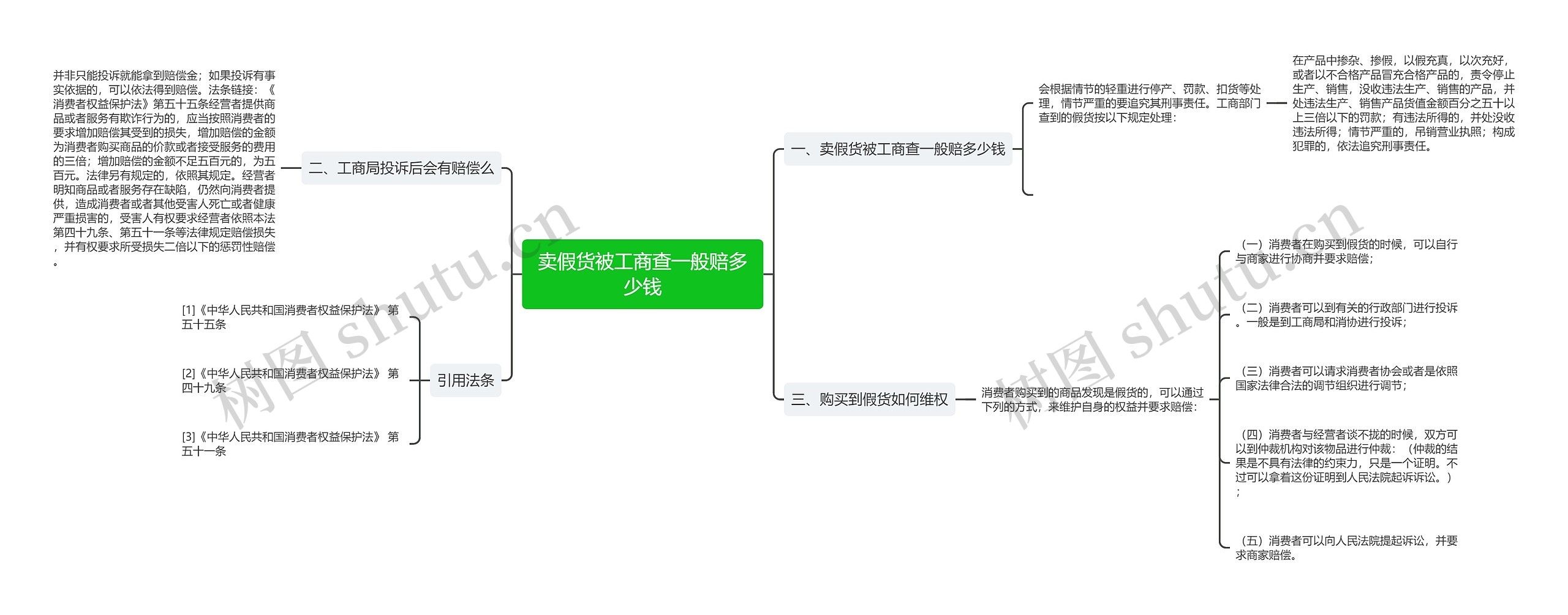 树图思维导图提供《卖假货被工商查一般赔多少钱》在线思维导图免费制作,点击“编辑”按钮,可对《卖假货被工商查一般赔多少钱》进行在线思维导图编辑,本思维导图属于思维导图模板主题,文件编号是:15dff893dfbec8febab56a843c3c066b