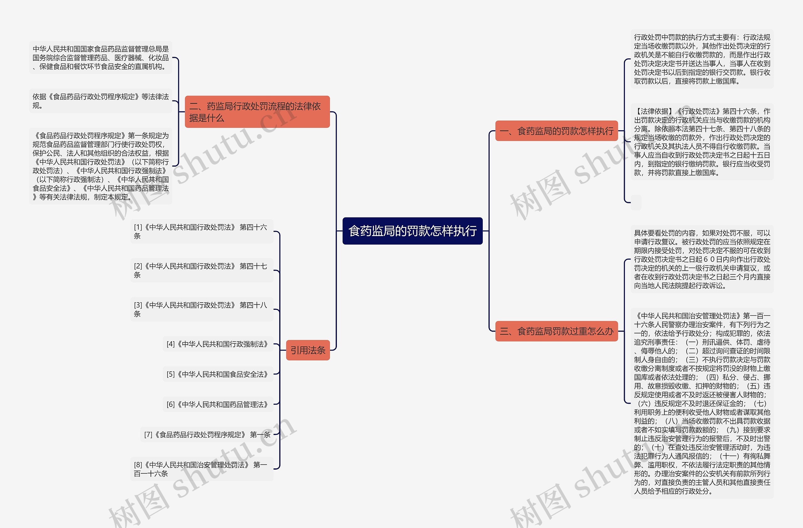 树图思维导图提供《食药监局的罚款怎样执行》在线思维导图免费制作,点击“编辑”按钮,可对《食药监局的罚款怎样执行》进行在线思维导图编辑,本思维导图属于思维导图模板主题,文件编号是:f755f2ff3877997fb978c30ee349fb8f