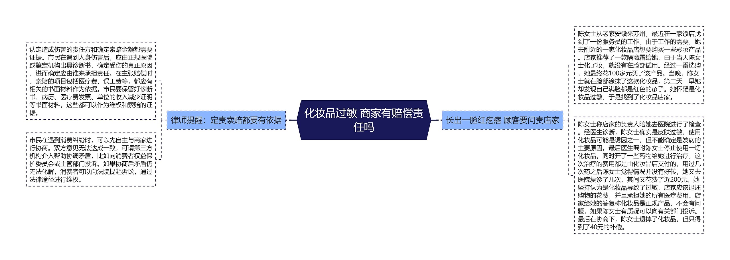 树图思维导图提供《化妆品过敏 商家有赔偿责任吗》在线思维导图免费制作,点击“编辑”按钮,可对《化妆品过敏 商家有赔偿责任吗》进行在线思维导图编辑,本思维导图属于思维导图模板主题,文件编号是:d92d4f89228c12e66ef3c43cfb622265