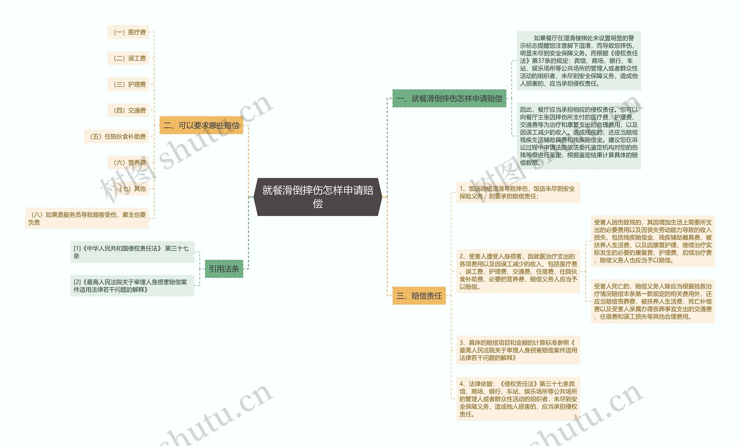 树图思维导图提供《就餐滑倒摔伤怎样申请赔偿》在线思维导图免费制作,点击“编辑”按钮,可对《就餐滑倒摔伤怎样申请赔偿》进行在线思维导图编辑,本思维导图属于思维导图模板主题,文件编号是:266a0de8ba0b717a86585cea1ee284da