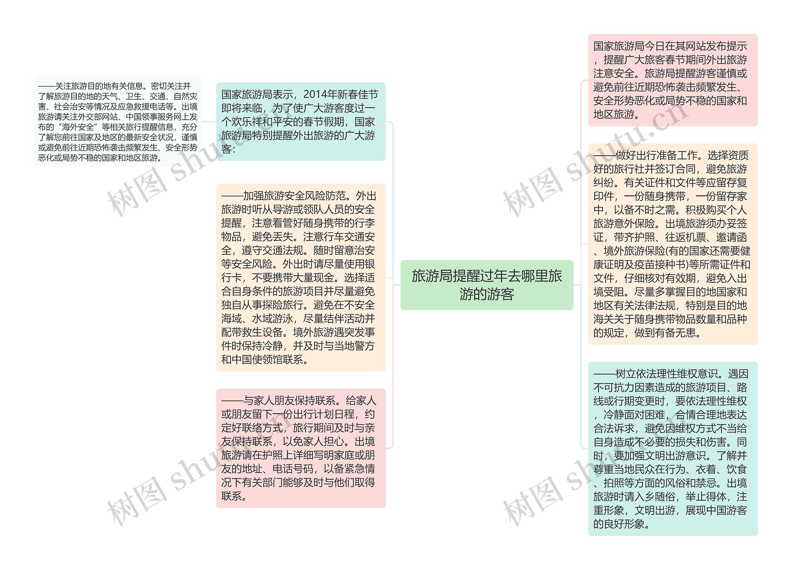 国家旅游局表示,2014年新春佳节即将来临,为了使广大游客度过一个欢乐祥和平安的春节假期,国家旅游局特别提醒外出旅游的广大游客: