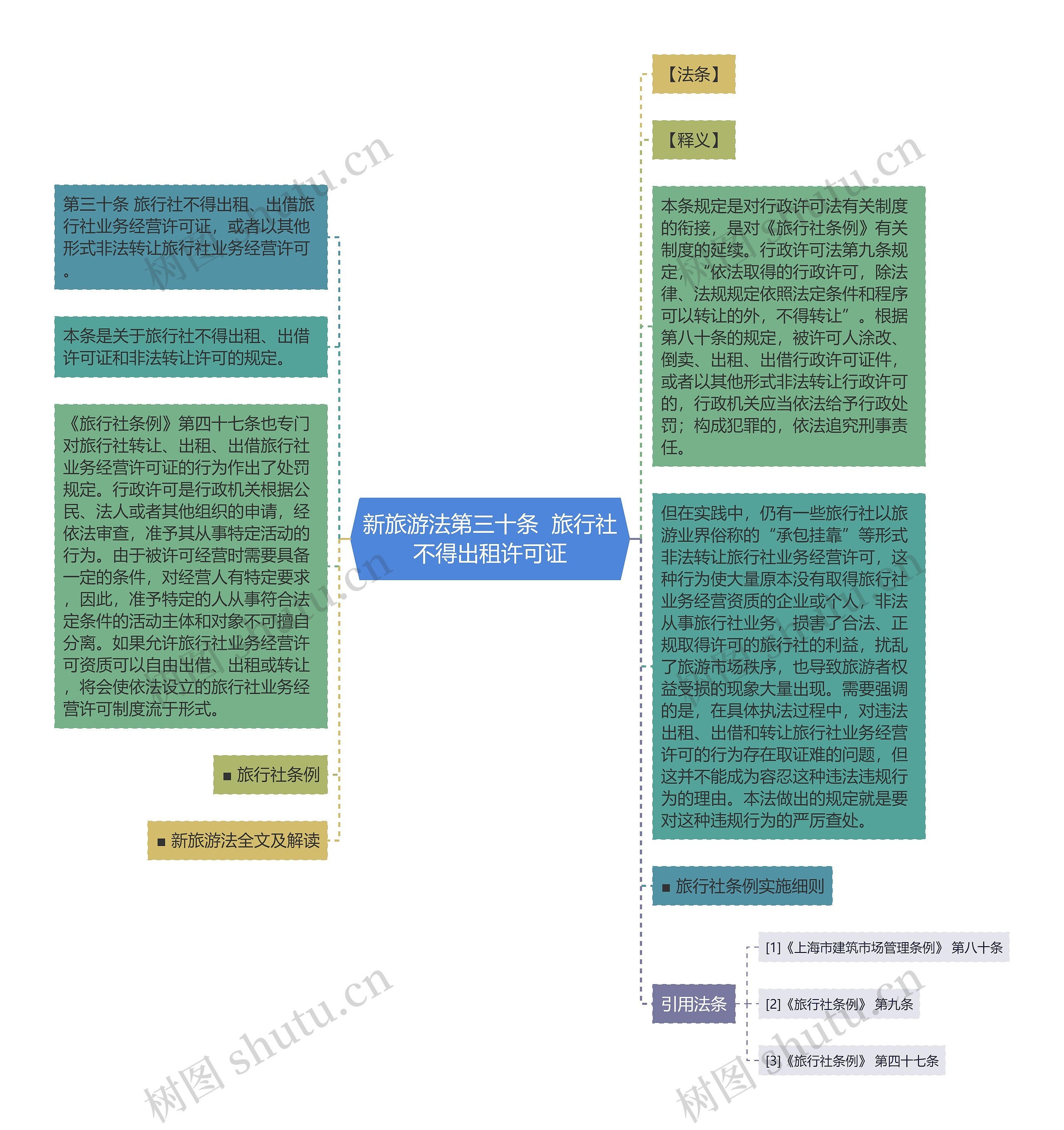 本条规定是对行政许可法有关制度的衔接,是对《旅行社条例》有关制度的延续。行政许可法第九条规定,“依法取得的行政许可,除法律、法规规定依照法定条件和程序可以转让的外,不得转让”。根据第八十条的规定,被许可人涂改、倒卖、出租、出借行政许可证件,或者以其他形式非法转让行政许可的,行政机关应当依法给予行政处罚;构成犯罪的,依法追究刑事责任。