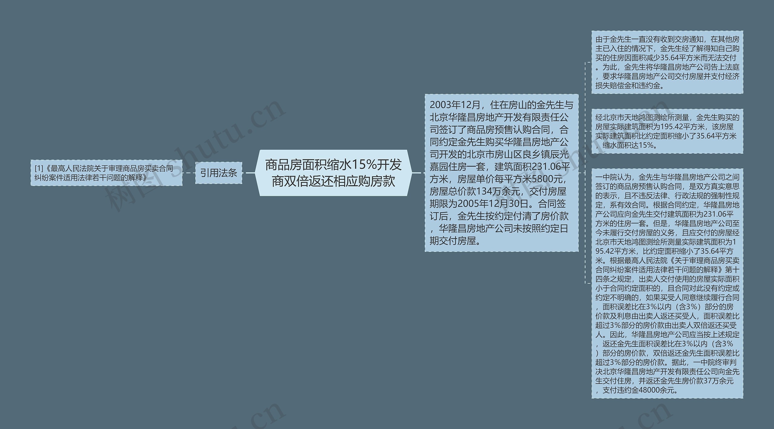 树图思维导图提供《商品房面积缩水15%开发商双倍返还相应购房款》在线思维导图免费制作,点击“编辑”按钮,可对《商品房面积缩水15%开发商双倍返还相应购房款》进行在线思维导图编辑,本思维导图属于思维导图模板主题,文件编号是:ccc7475f2af9a537f09e6b415722f4bf
