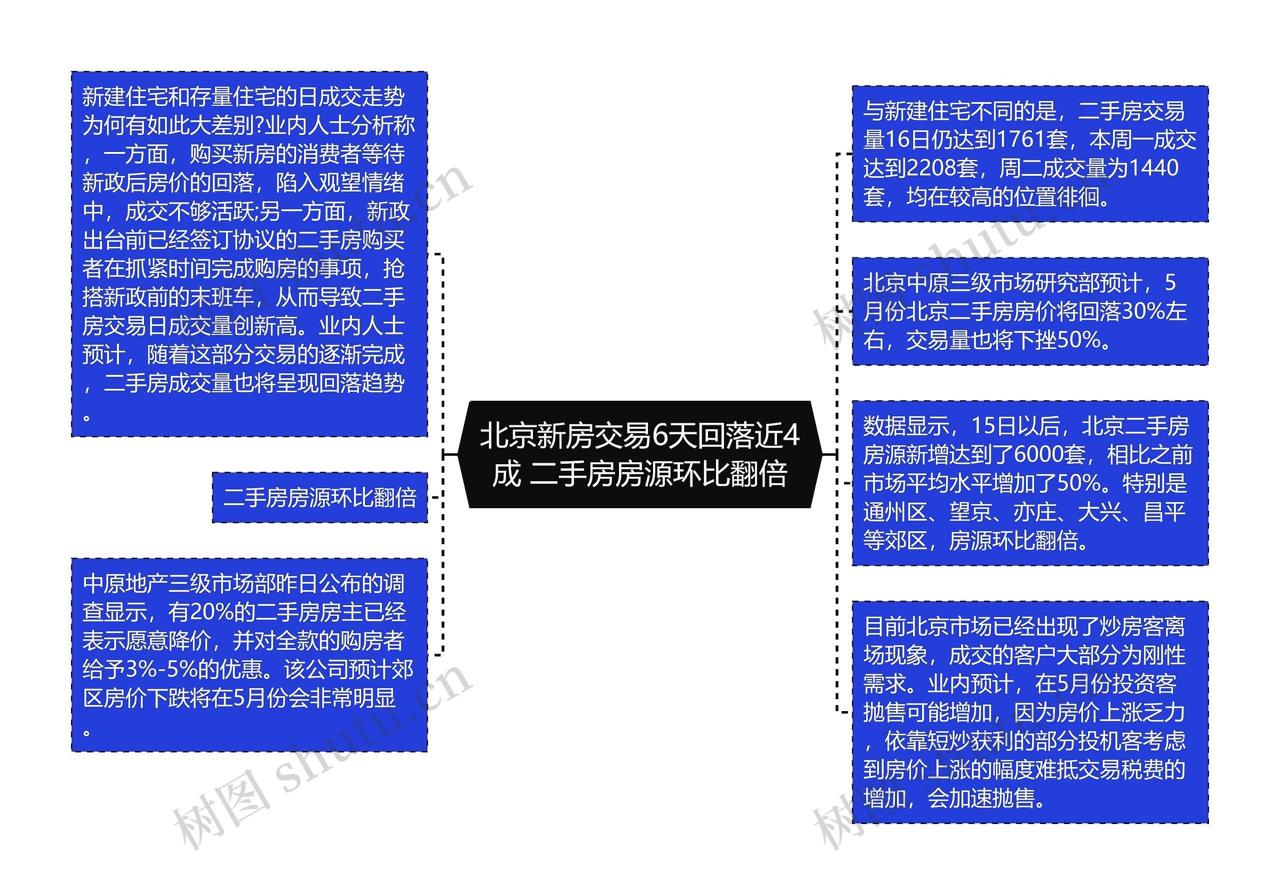 树图思维导图提供《北京新房交易6天回落近4成 二手房房源环比翻倍》在线思维导图免费制作,点击“编辑”按钮,可对《北京新房交易6天回落近4成 二手房房源环比翻倍》进行在线思维导图编辑,本思维导图属于思维导图模板主题,文件编号是:d1f8b0730a0ea957b11ff516c3f4bbad