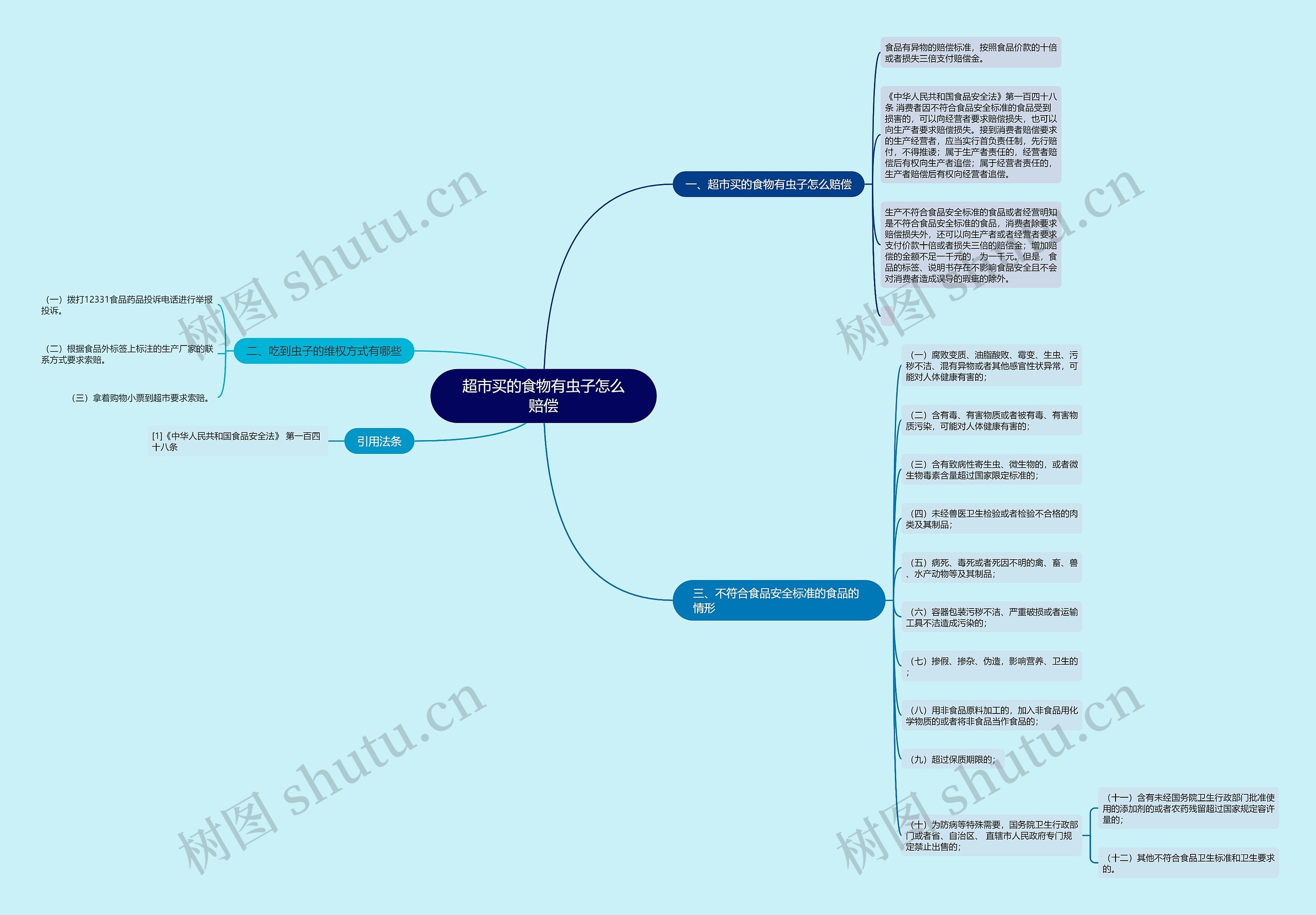 树图思维导图提供《超市买的食物有虫子怎么赔偿》在线思维导图免费制作,点击“编辑”按钮,可对《超市买的食物有虫子怎么赔偿》进行在线思维导图编辑,本思维导图属于思维导图模板主题,文件编号是:c7cc10a9bac44179bea530e817b7bcf0