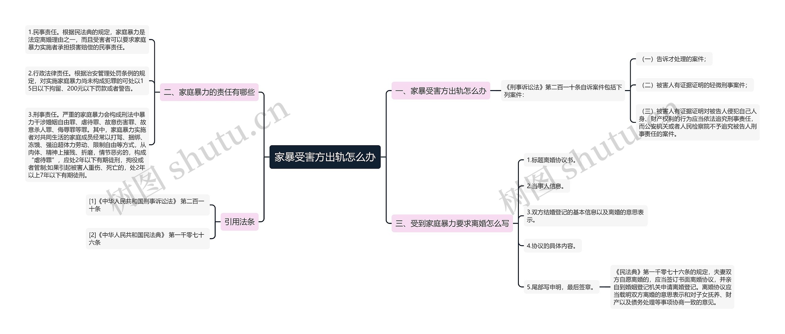 树图思维导图提供《家暴受害方出轨怎么办》在线思维导图免费制作,点击“编辑”按钮,可对《家暴受害方出轨怎么办》进行在线思维导图编辑,本思维导图属于思维导图模板主题,文件编号是:ee0a8527b4448c1bd025022f55c18845
