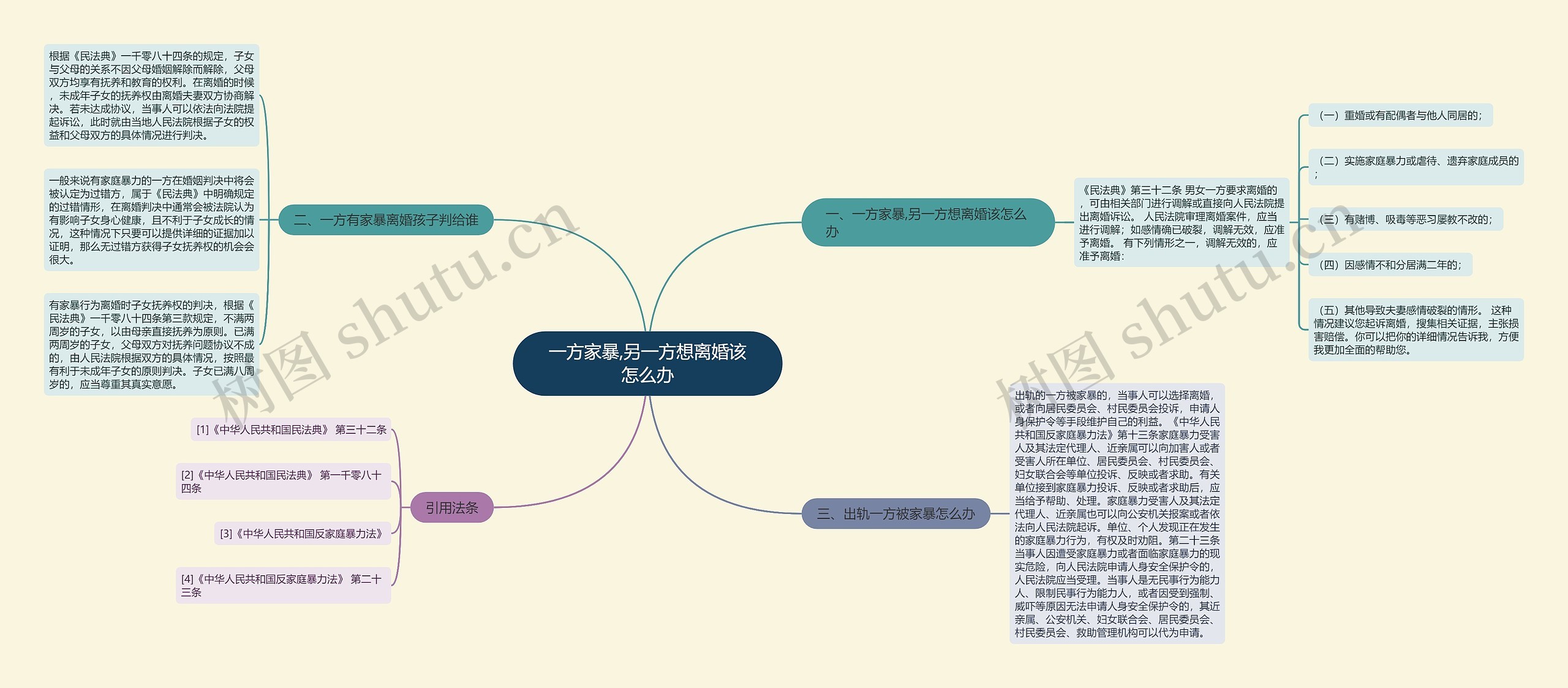 树图思维导图提供《一方家暴,另一方想离婚该怎么办》在线思维导图免费制作,点击“编辑”按钮,可对《一方家暴,另一方想离婚该怎么办》进行在线思维导图编辑,本思维导图属于思维导图模板主题,文件编号是:58cee34fbe3ad13489402ce3cfd04cbe