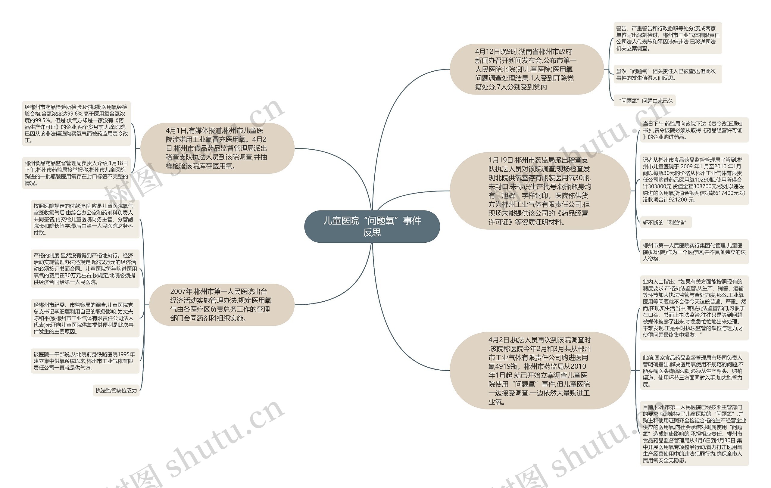 4月1日,有媒体报道,郴州市儿童医院涉嫌用工业氧冒充医用氧。4月2日,郴州市食品药品监督管理局派出稽查支队执法人员到该院调查,并抽样检验该院库存医用氧。