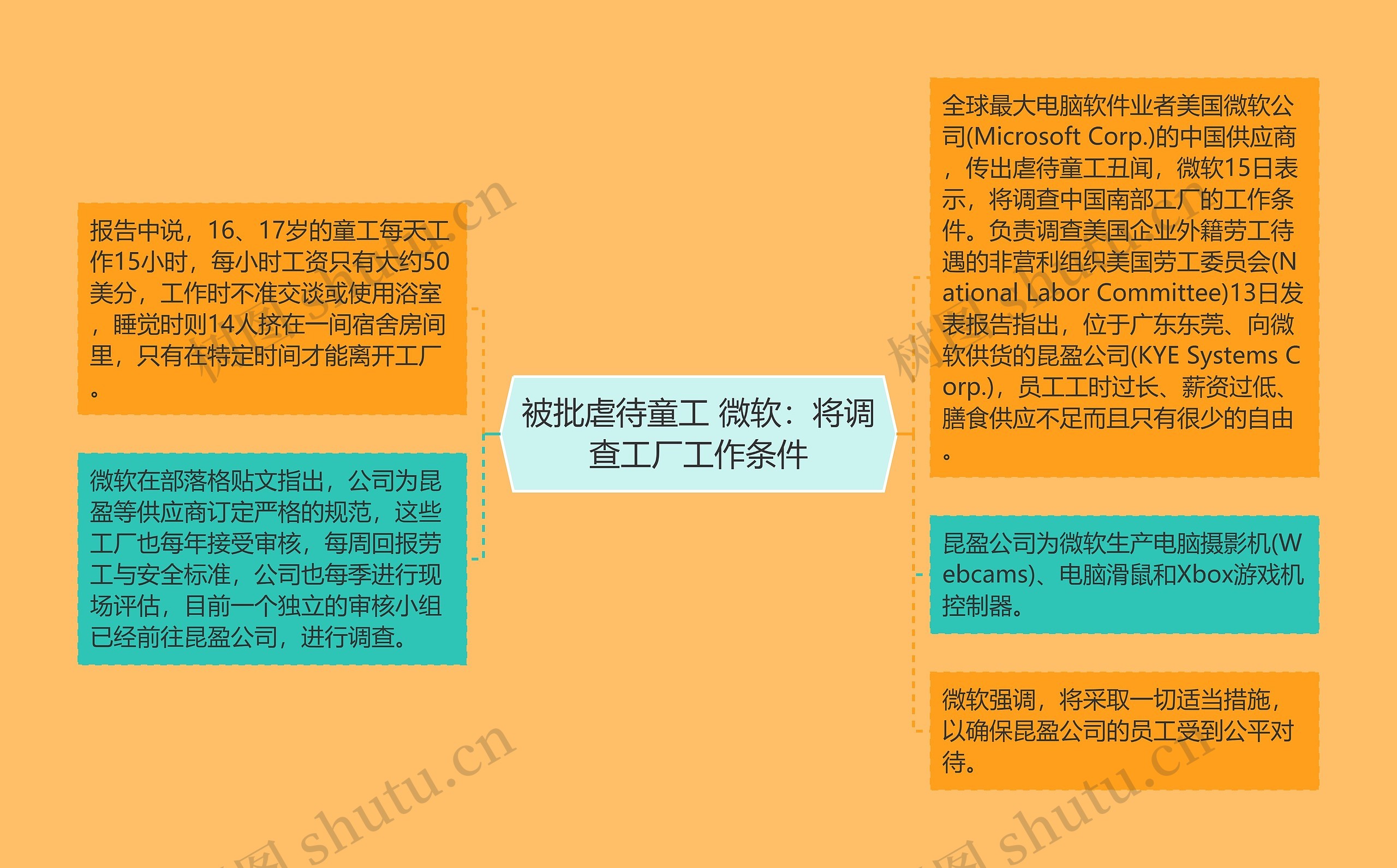 树图思维导图提供《被批虐待童工 微软:将调查工厂工作条件》在线思维导图免费制作,点击“编辑”按钮,可对《被批虐待童工 微软:将调查工厂工作条件》进行在线思维导图编辑,本思维导图属于思维导图模板主题,文件编号是:bc9b67b5fe6c3b47068a22b13c625411