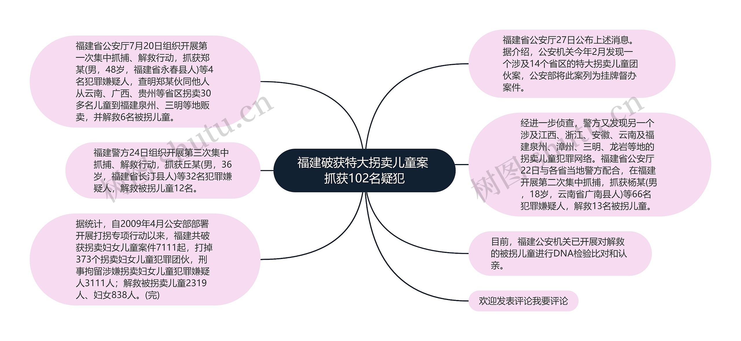 福建省公安厅27日公布上述消息。据介绍,公安机关今年2月发现一个涉及14个省区的特大拐卖儿童团伙案,公安部将此案列为挂牌督办案件。
