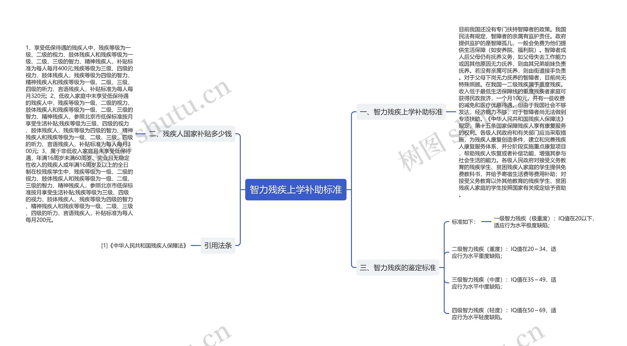 树图思维导图提供《智力残疾上学补助标准》在线思维导图免费制作,点击“编辑”按钮,可对《智力残疾上学补助标准》进行在线思维导图编辑,本思维导图属于思维导图模板主题,文件编号是:7a19658b33d7abbc9a38b5b76075d6ac