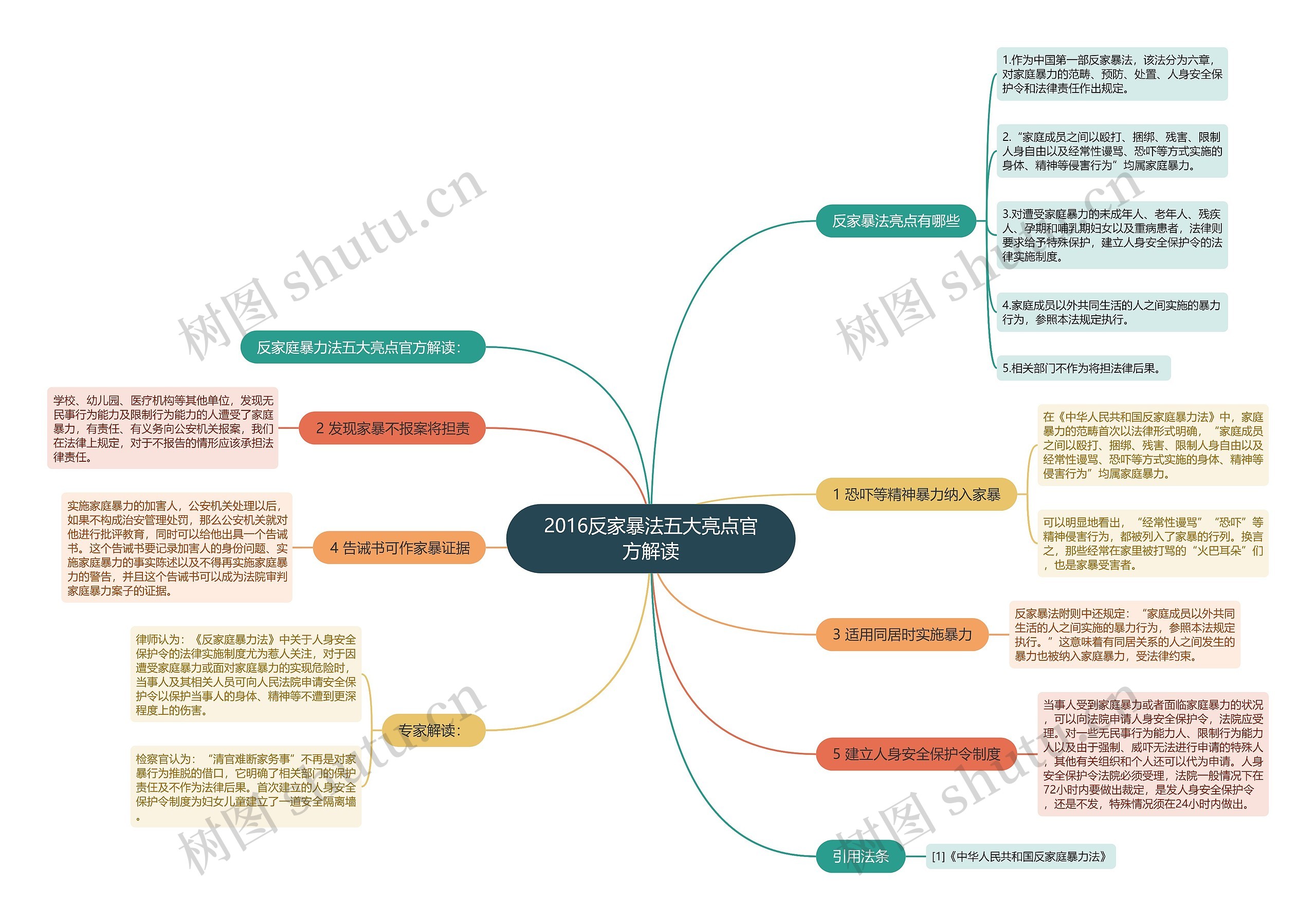 树图思维导图提供《2016反家暴法五大亮点官方解读》在线思维导图免费制作,点击“编辑”按钮,可对《2016反家暴法五大亮点官方解读》进行在线思维导图编辑,本思维导图属于思维导图模板主题,文件编号是:1b0713b22a17f2ef80b75d1202e9965d