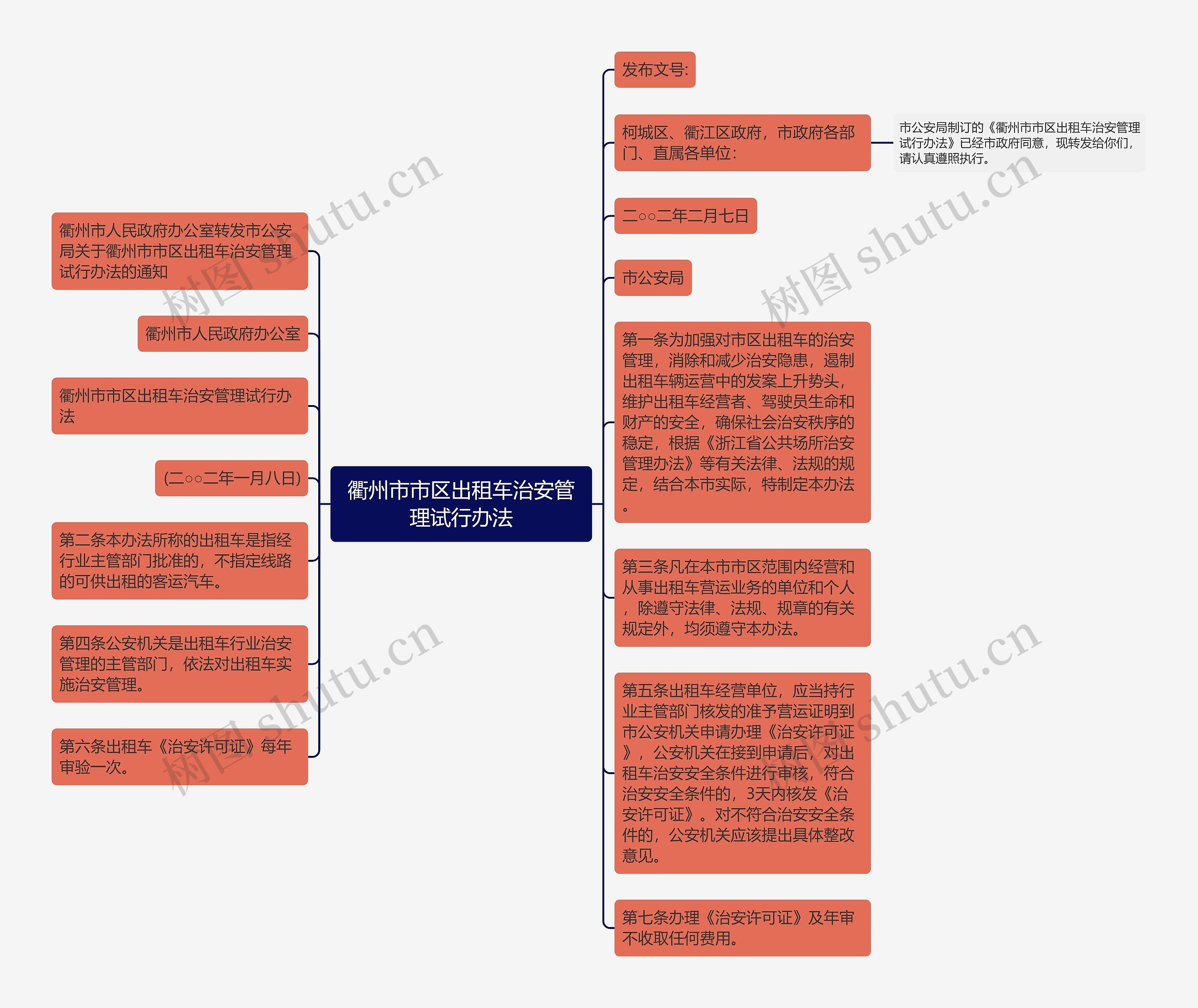 第一条为加强对市区出租车的治安管理,消除和减少治安隐患,遏制出租车辆运营中的发案上升势头,维护出租车经营者、驾驶员生命和财产的安全,确保社会治安秩序的稳定,根据《浙江省公共场所治安管理办法》等有关法律、法规的规定,结合本市实际,特制定本办法。
