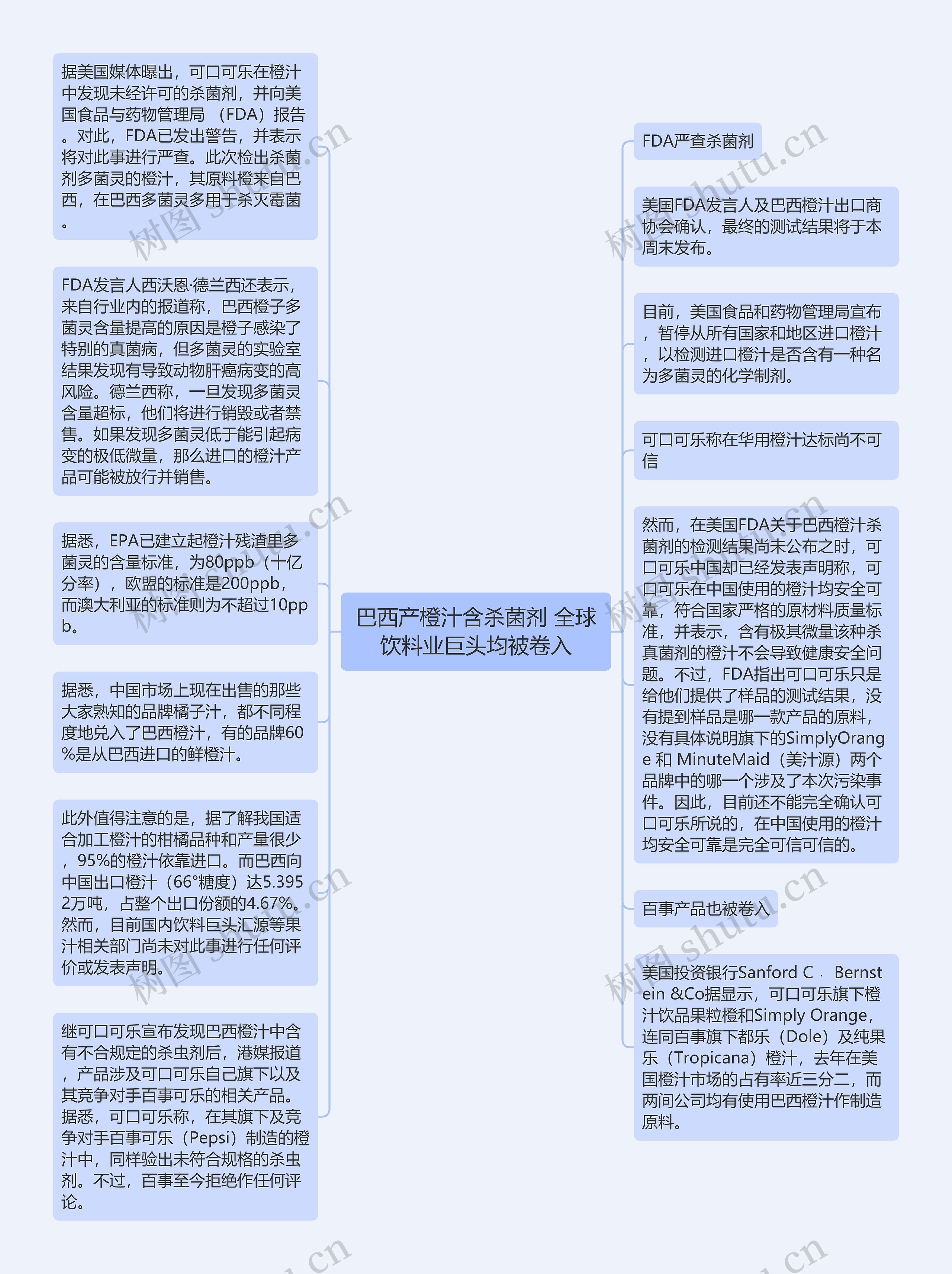 据美国媒体曝出,可口可乐在橙汁中发现未经许可的杀菌剂,并向美国食品与药物管理局 (FDA)报告。对此,FDA已发出警告,并表示将对此事进行严查。此次检出杀菌剂多菌灵的橙汁,其原料橙来自巴西,在巴西多菌灵多用于杀灭霉菌。