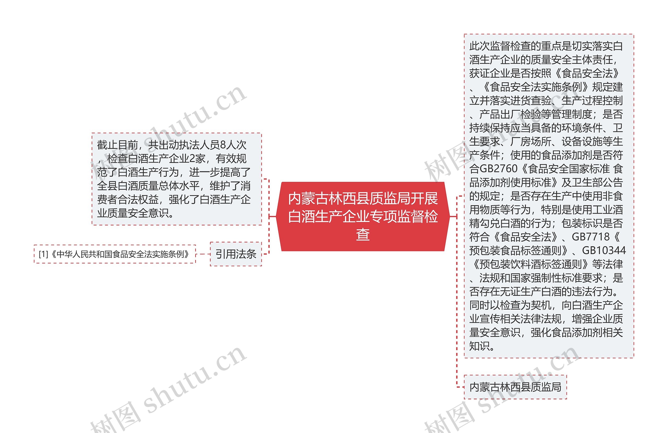 树图思维导图提供《内蒙古林西县质监局开展白酒生产企业专项监督检查》在线思维导图免费制作,点击“编辑”按钮,可对《内蒙古林西县质监局开展白酒生产企业专项监督检查》进行在线思维导图编辑,本思维导图属于思维导图模板主题,文件编号是:33fccee259bde73baf73f0dd5a77871f