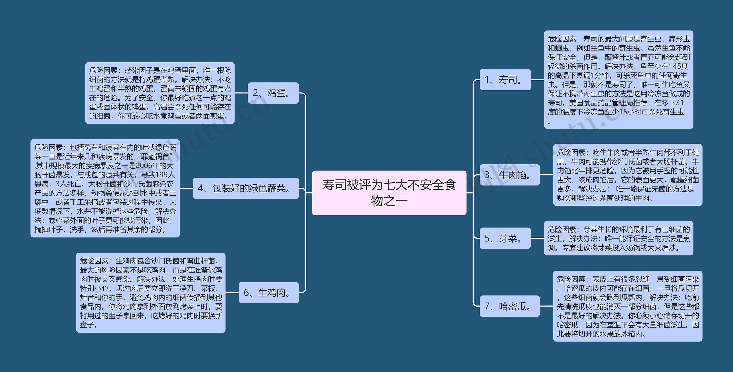 树图思维导图提供《寿司被评为七大不安全食物之一》在线思维导图免费制作,点击“编辑”按钮,可对《寿司被评为七大不安全食物之一》进行在线思维导图编辑,本思维导图属于思维导图模板主题,文件编号是:7be120093983470d06ba5d89d6b39a14