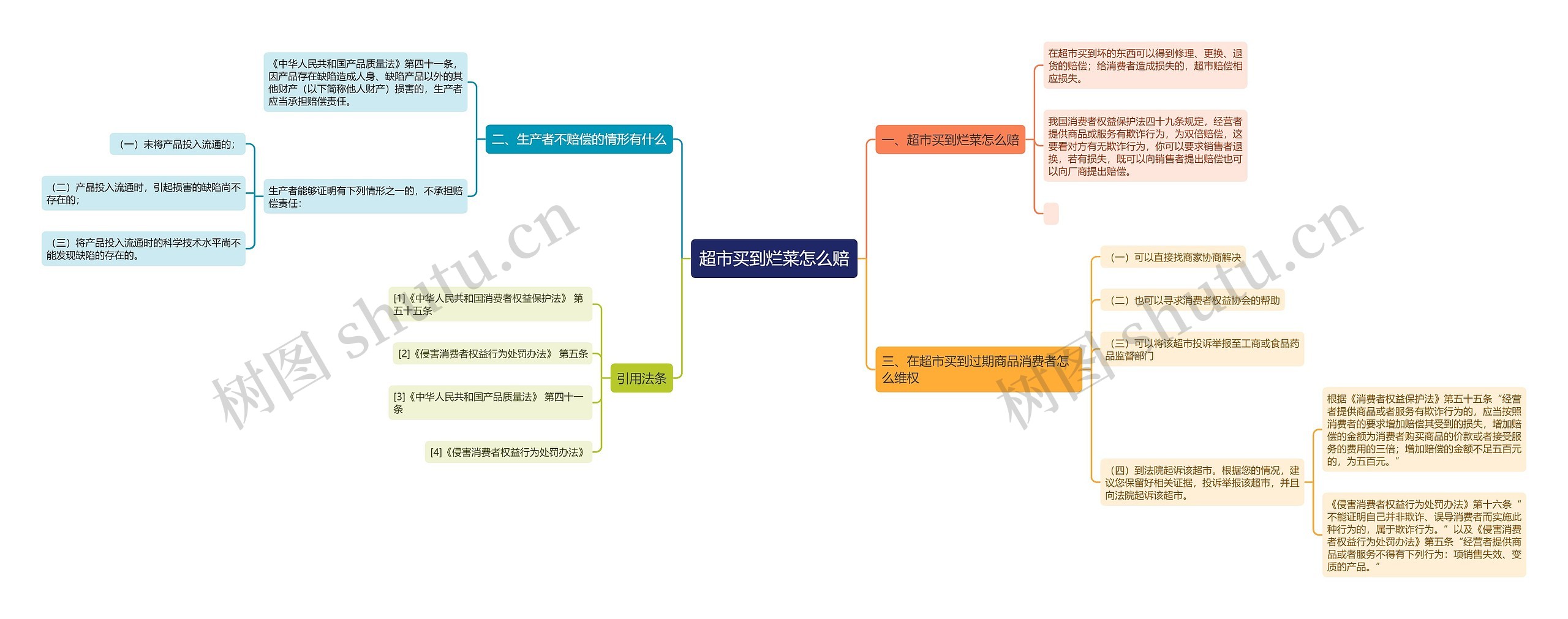 树图思维导图提供《超市买到烂菜怎么赔》在线思维导图免费制作,点击“编辑”按钮,可对《超市买到烂菜怎么赔》进行在线思维导图编辑,本思维导图属于思维导图模板主题,文件编号是:5727f376676f992e7cf64b05227b56f3