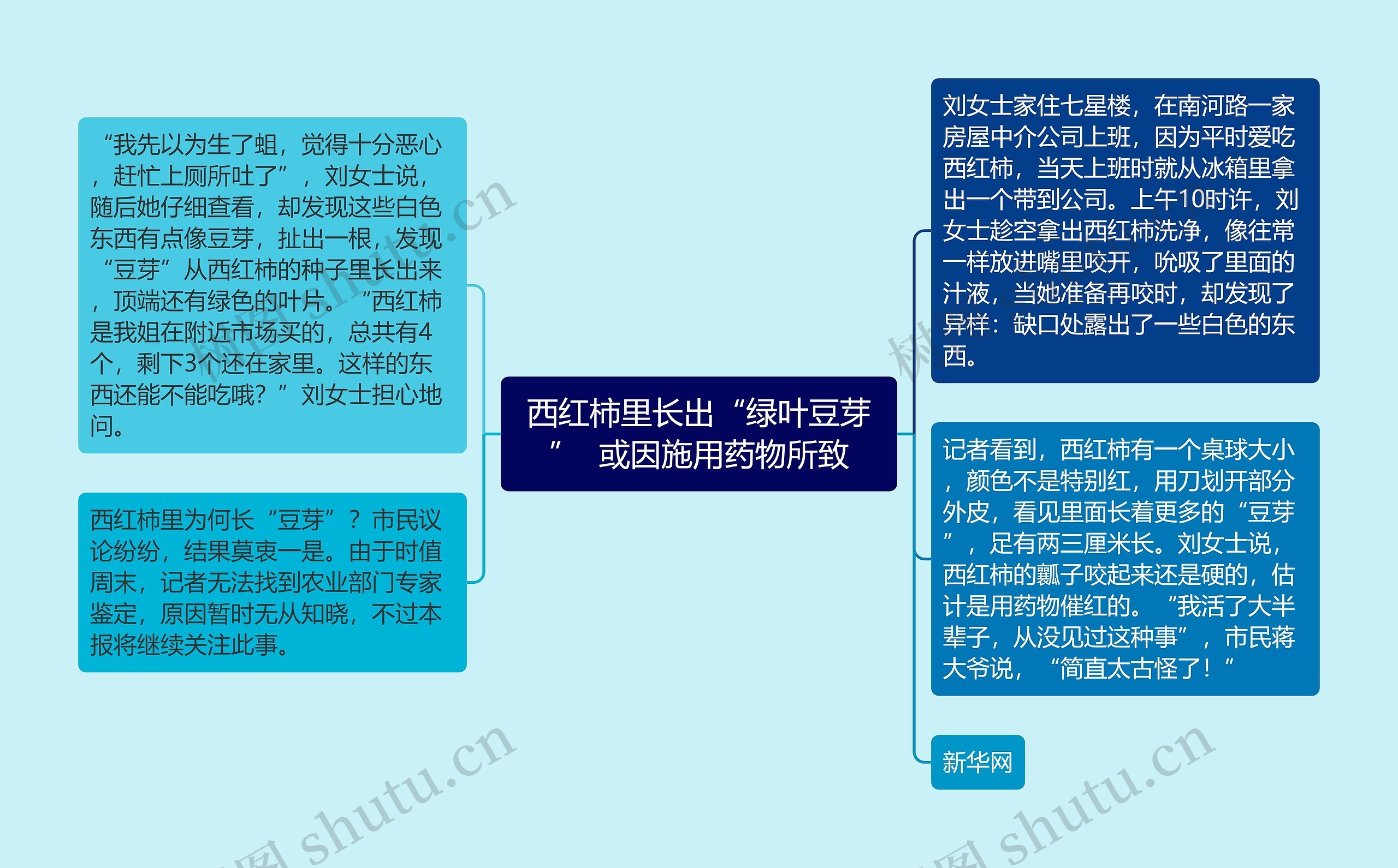 树图思维导图提供《西红柿里长出“绿叶豆芽” 或因施用药物所致》在线思维导图免费制作,点击“编辑”按钮,可对《西红柿里长出“绿叶豆芽” 或因施用药物所致》进行在线思维导图编辑,本思维导图属于思维导图模板主题,文件编号是:dbd572a4290cc1f1d2c4067a8910983a