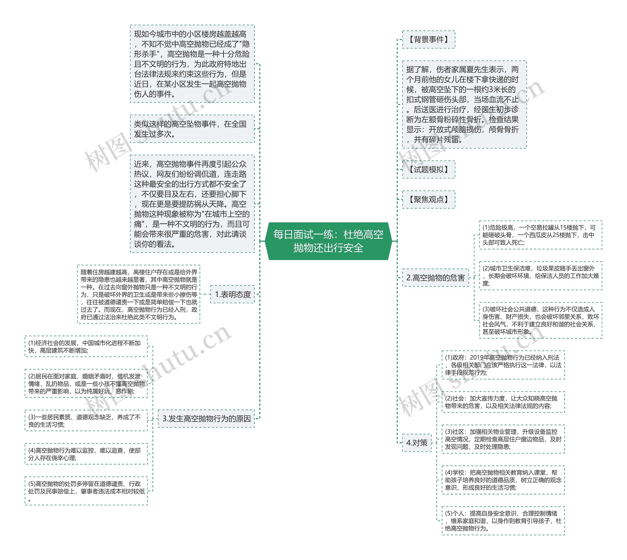 树图思维导图提供《每日面试一练:杜绝高空抛物还出行安全》在线思维导图免费制作,点击“编辑”按钮,可对《每日面试一练:杜绝高空抛物还出行安全》进行在线思维导图编辑,本思维导图属于思维导图模板主题,文件编号是:58ca2d17ef0c47a8d466a06786800983