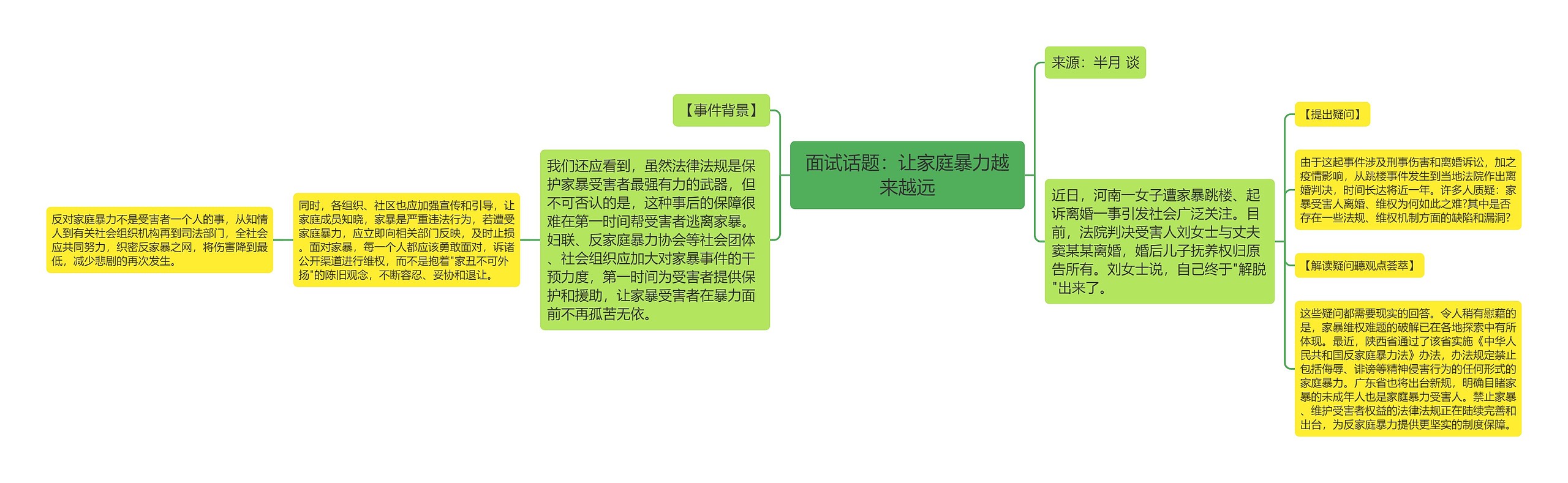 树图思维导图提供《面试话题:让家庭暴力越来越远》在线思维导图免费制作,点击“编辑”按钮,可对《面试话题:让家庭暴力越来越远》进行在线思维导图编辑,本思维导图属于思维导图模板主题,文件编号是:4561d2eae3b9ae99c69194eefe97a5b7