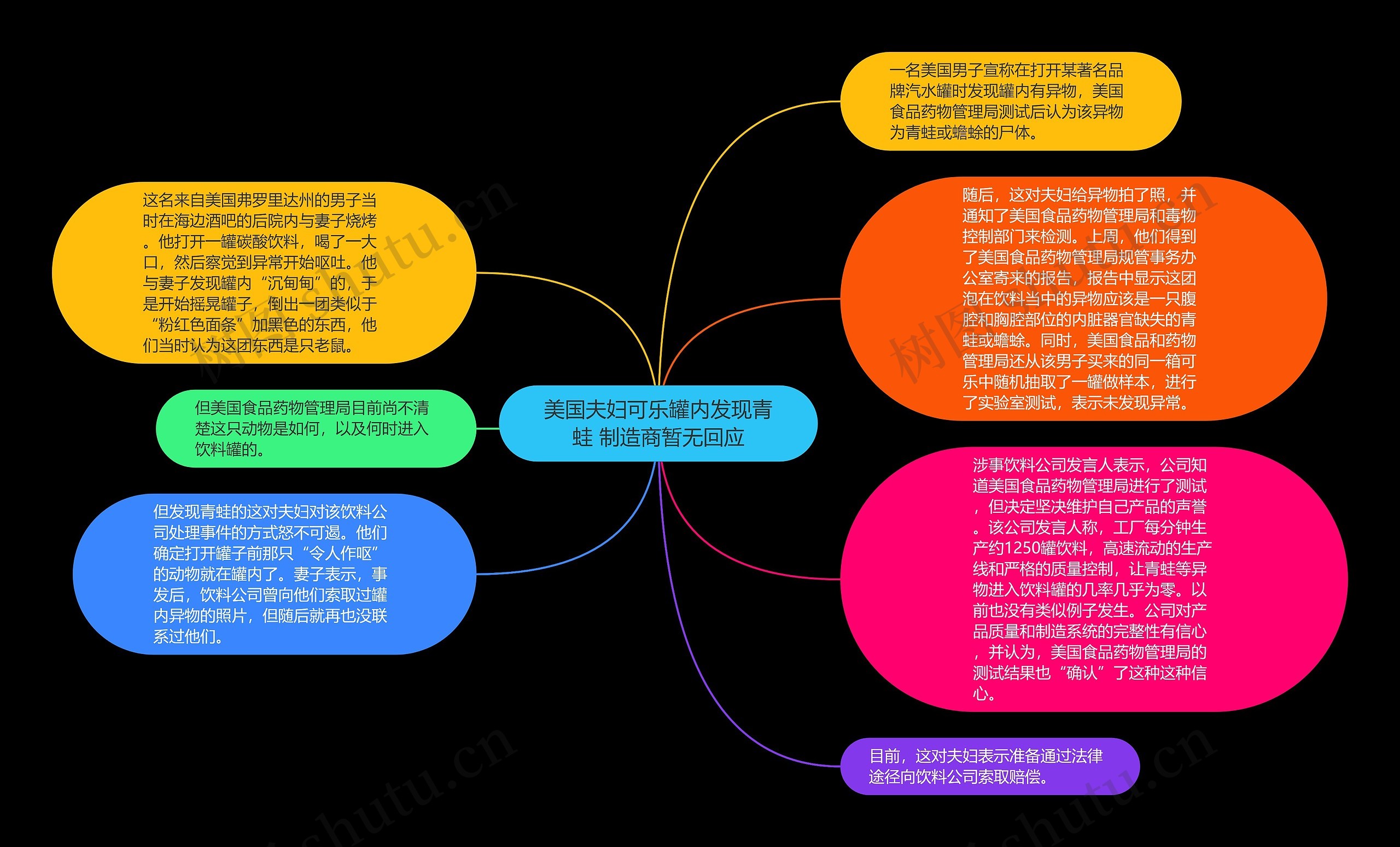 一名美国男子宣称在打开某著名品牌汽水罐时发现罐内有异物,美国食品药物管理局测试后认为该异物为青蛙或蟾蜍的尸体。