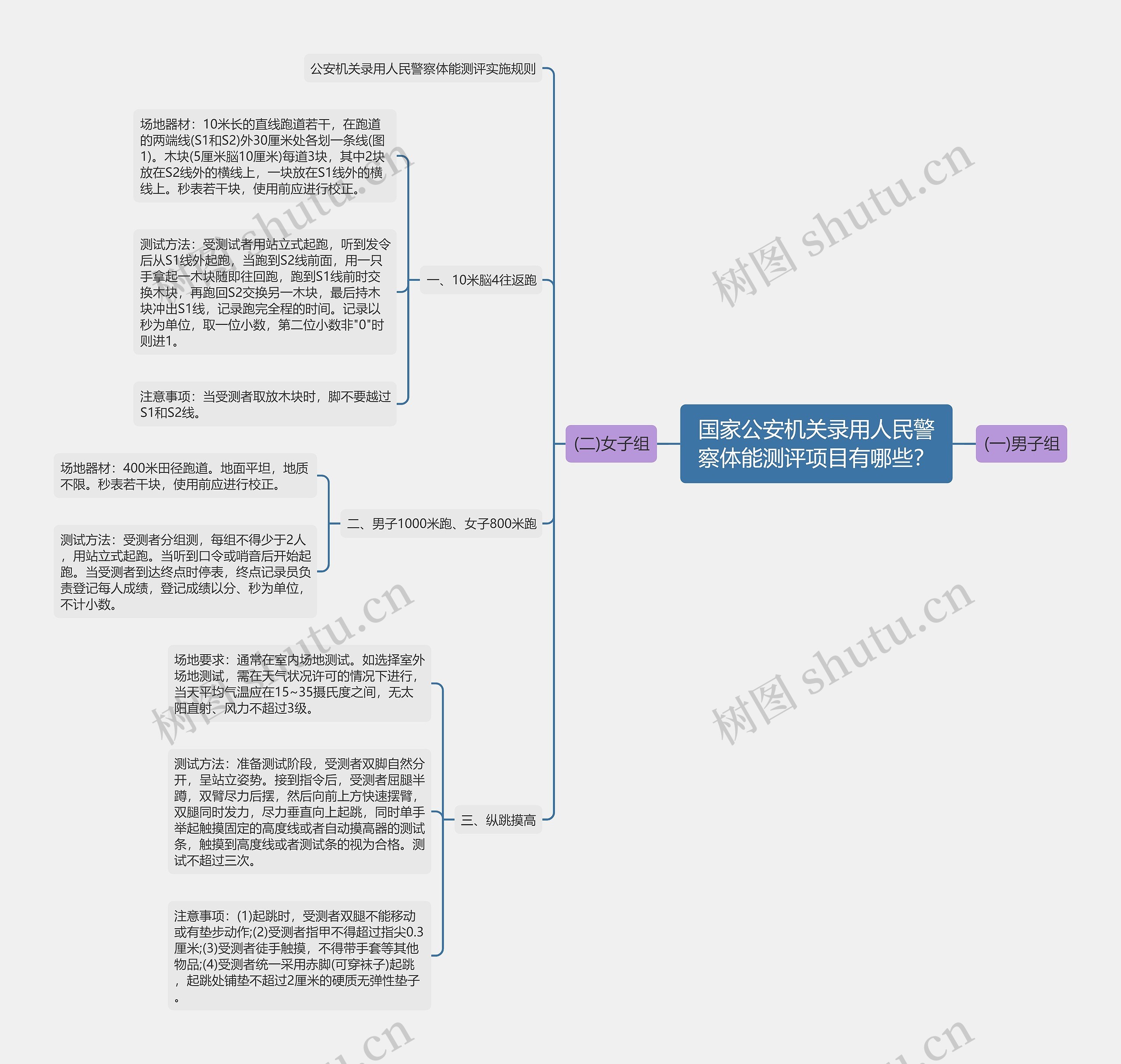 树图思维导图提供《国家公安机关录用人民警察体能测评项目有哪些?》在线思维导图免费制作,点击“编辑”按钮,可对《国家公安机关录用人民警察体能测评项目有哪些?》进行在线思维导图编辑,本思维导图属于思维导图模板主题,文件编号是:2dbe02211f16d26b74af16932938a853