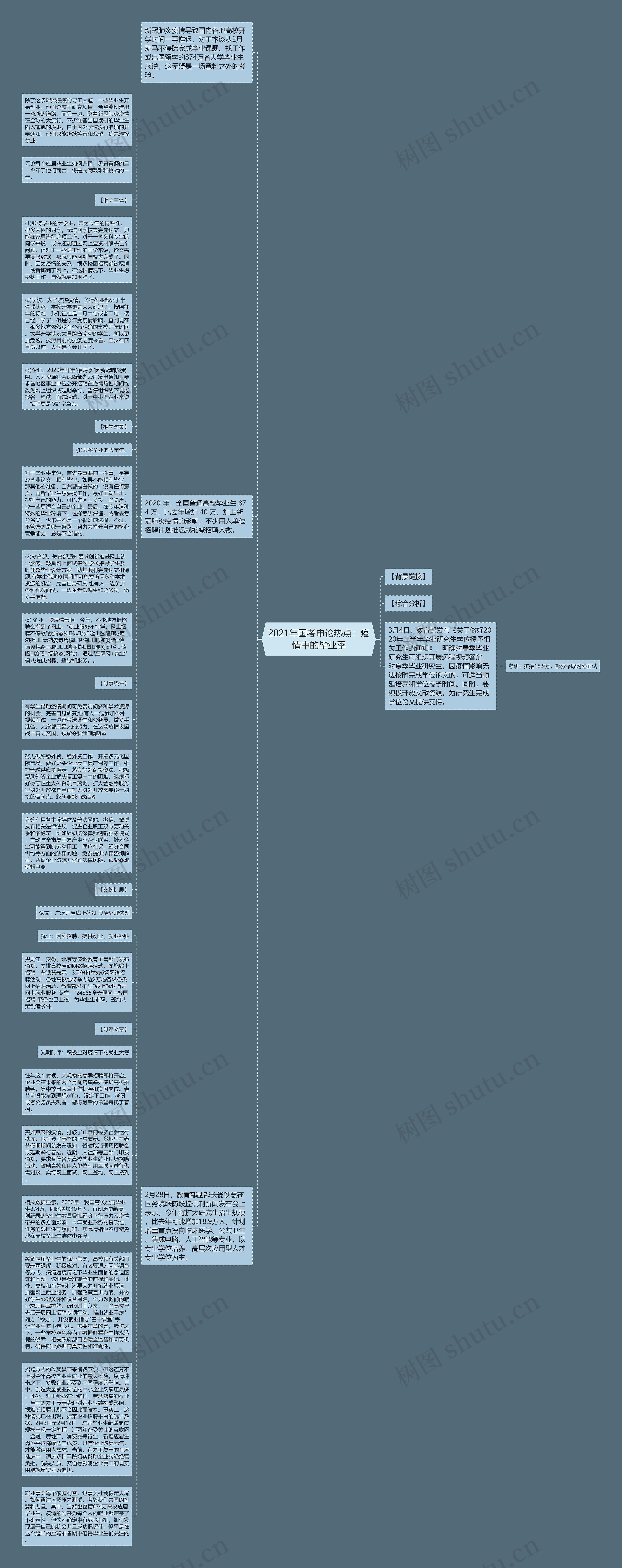 (2)教育部。教育部通知要求创新推进网上就业服务,鼓励网上面试签约;学校指导学生及时调整毕业设计方案,助其顺利完成论文和课题;有学生借助疫情期间可免费访问多种学术资源的机会,完善自身研究;也有人一边参加各种视频面试,一边备考选调生和公务员,做多手准备。