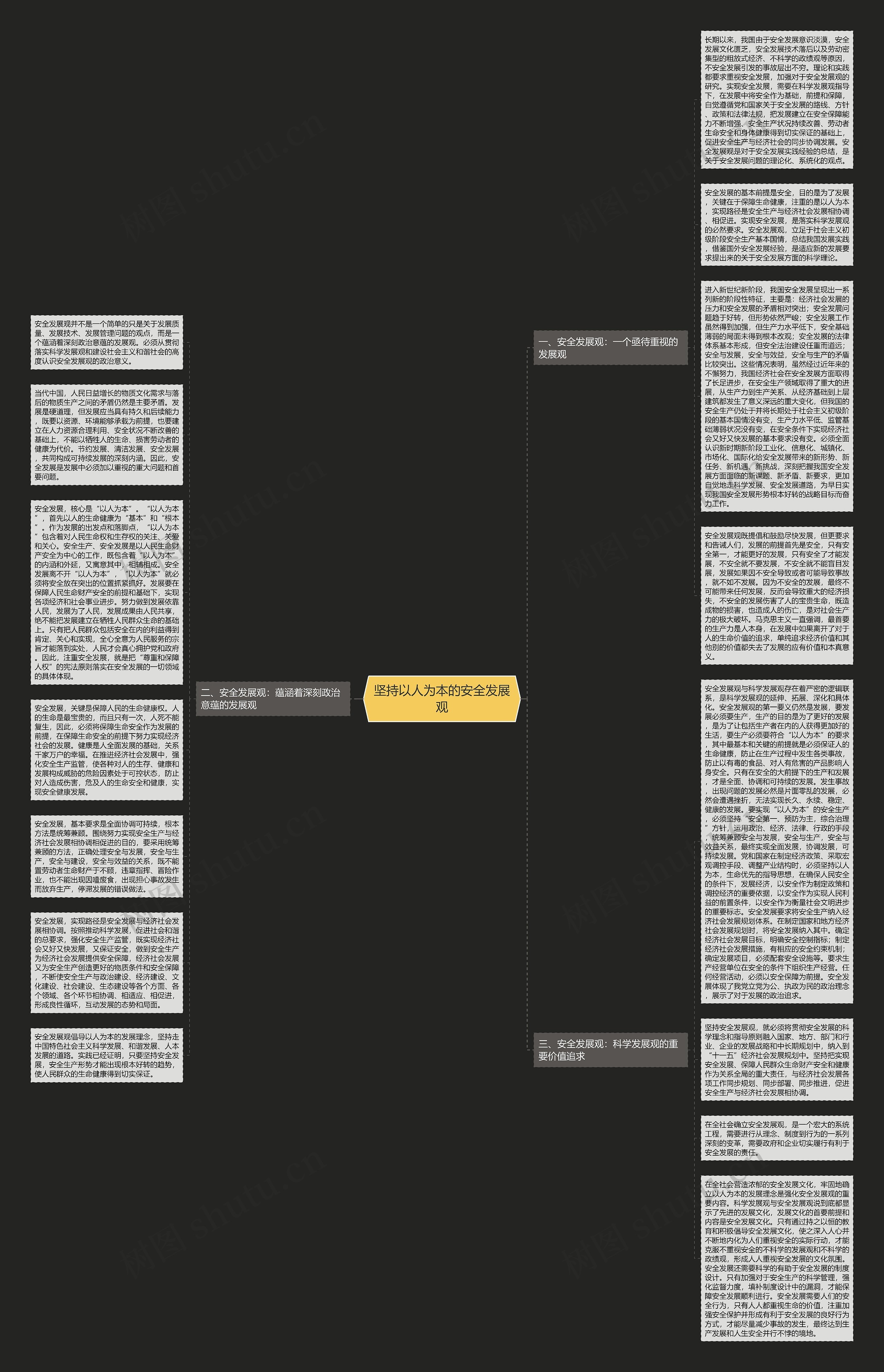 安全发展,核心是“以人为本”。“以人为本”,首先以人的生命健康为“基本”和“根本”。作为发展的出发点和落脚点,“以人为本”包含着对人民生命权和生存权的关注、关爱和关心。安全生产、安全发展是以人民生命财产安全为中心的工作,既包含着“以人为本”的内涵和外延,又寓意其中,相辅相成。安全发展离不开“以人为本”,“以人为本”就必须将安全放在突出的位置抓紧抓好。发展要在保障人民生命财产安全的前提和基础下,实现各项经济和社会事业进步。努力做到发展依靠人民,发展为了人民,发展成果由人民共享,绝不能把发展建立在牺牲人民群众生命的基础上。只有把人民群众包括安全在内的利益得到肯定、关心和实现,全心全意为人民服务的宗旨才能落到实处,人民才会真心拥护党和政府。因此,注重安全发展,就是把“尊重和保障人权”的宪法原则落实在安全发展的一切领域的具体体现。