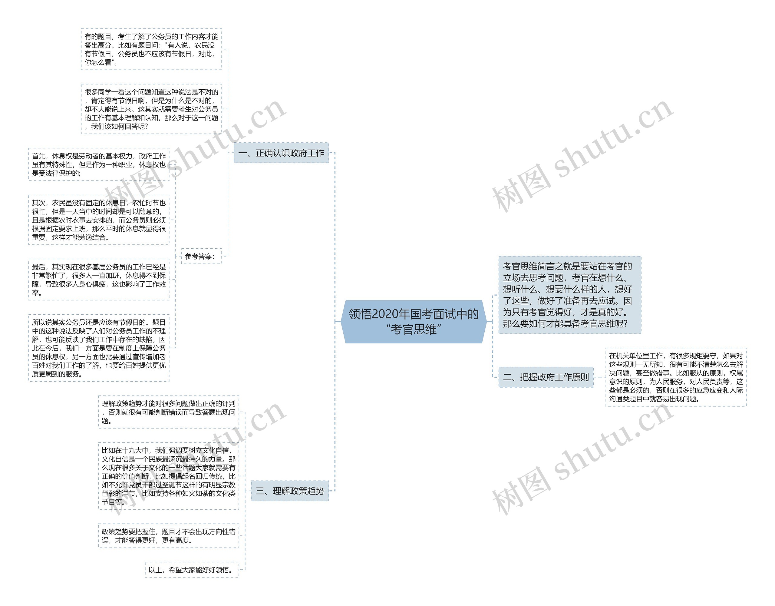 树图思维导图提供《领悟2020年国考面试中的“考官思维”》在线思维导图免费制作,点击“编辑”按钮,可对《领悟2020年国考面试中的“考官思维”》进行在线思维导图编辑,本思维导图属于思维导图模板主题,文件编号是:62edb378415a77007243e7bbb991f0eb