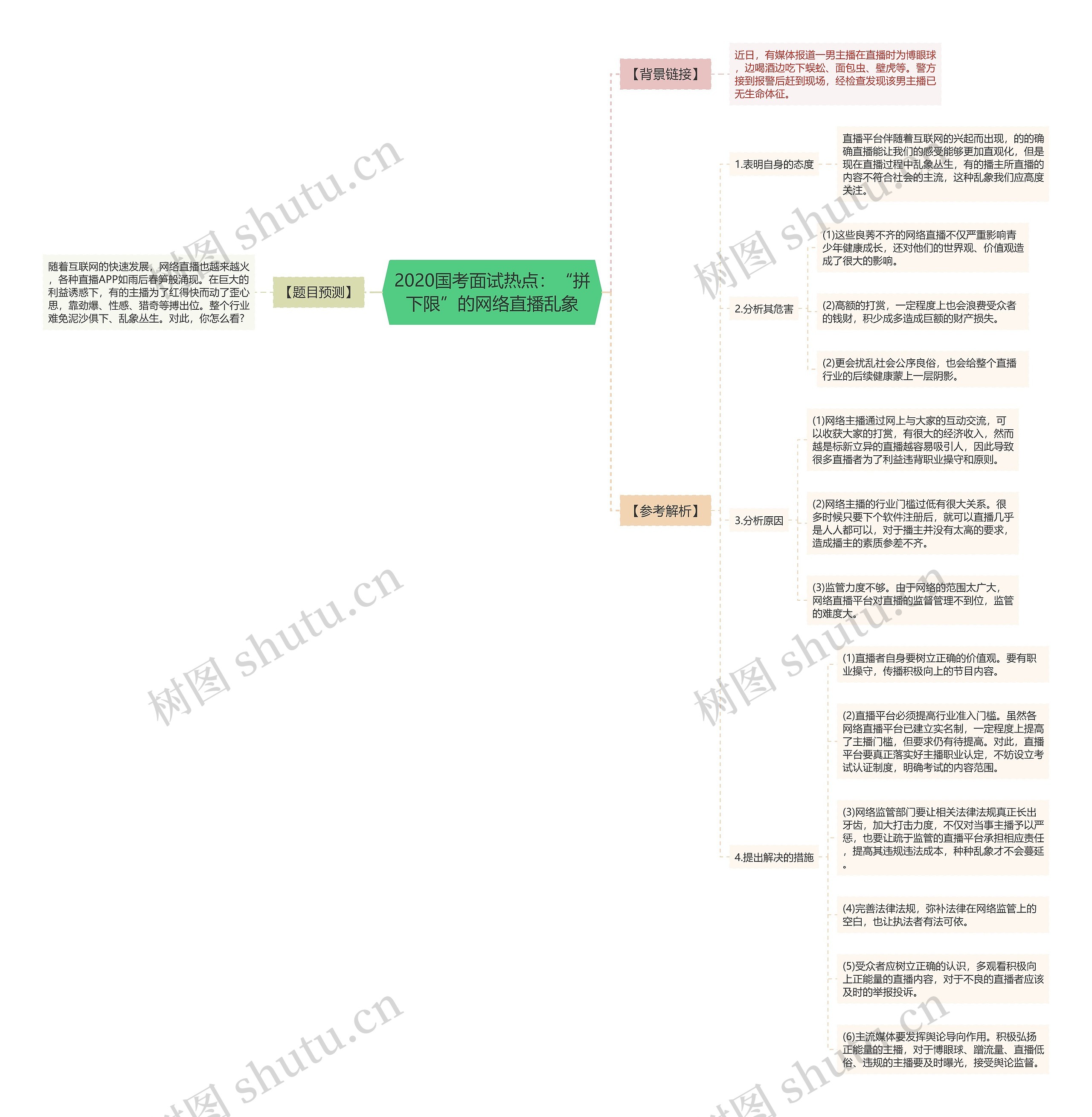 树图思维导图提供《2020国考面试热点:“拼下限”的网络直播乱象》在线思维导图免费制作,点击“编辑”按钮,可对《2020国考面试热点:“拼下限”的网络直播乱象》进行在线思维导图编辑,本思维导图属于思维导图模板主题,文件编号是:be276b8f41b88d193d4a87026246a2ad