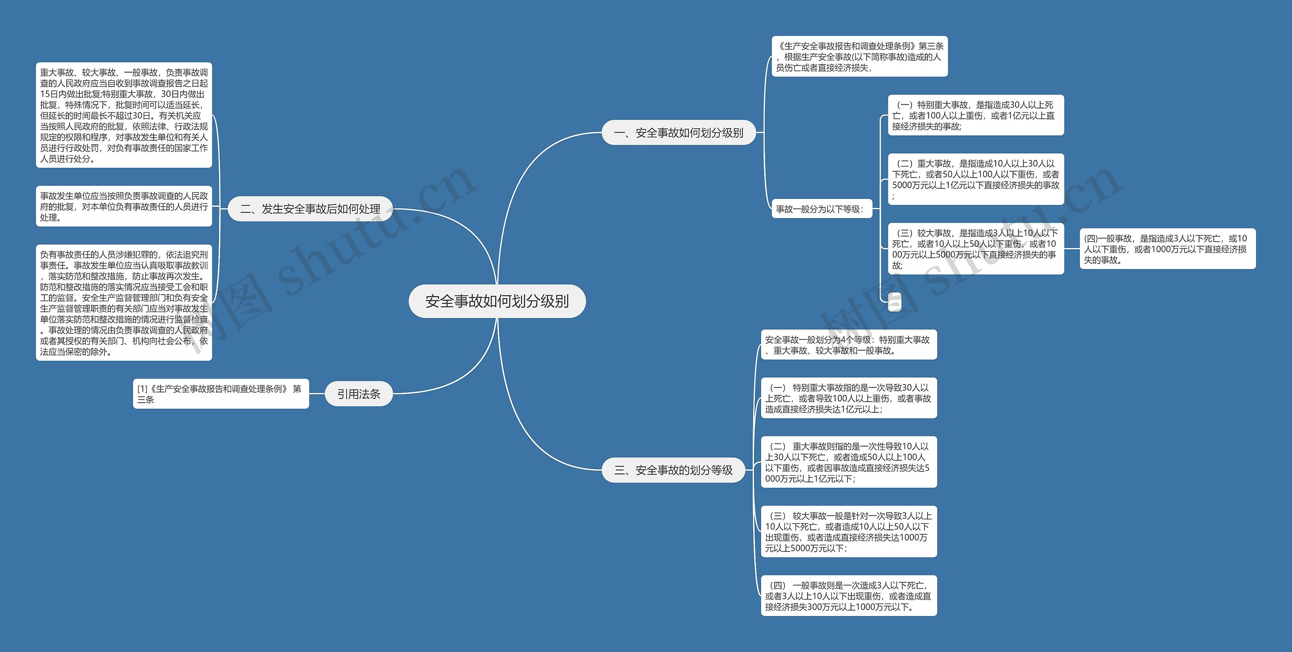树图思维导图提供《安全事故如何划分级别》在线思维导图免费制作,点击“编辑”按钮,可对《安全事故如何划分级别》进行在线思维导图编辑,本思维导图属于思维导图模板主题,文件编号是:b6099134310d80bedb466b7fc22d2ca3