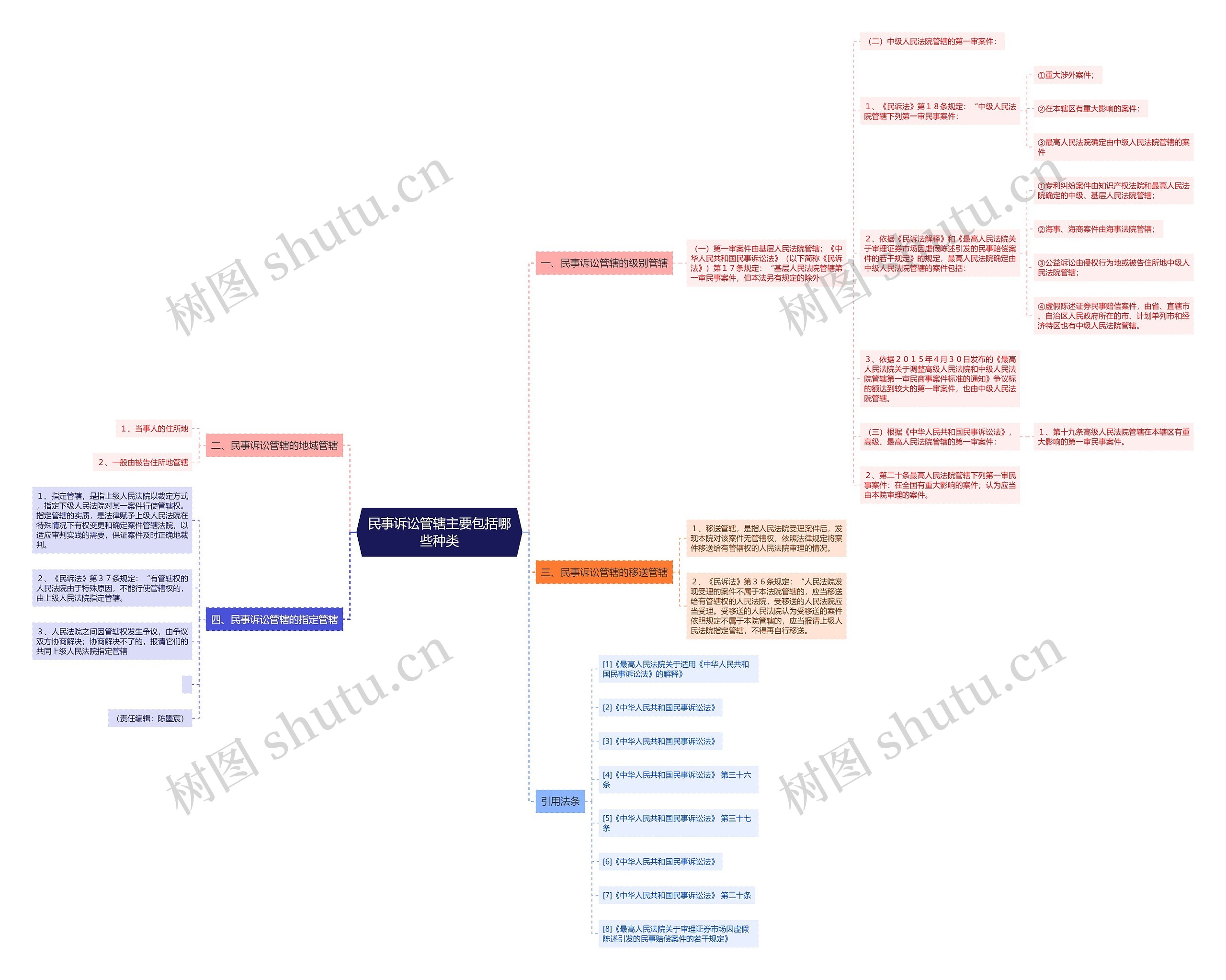 民事诉讼管辖是确定不同案件、不同区域、交由不同法院管辖的一个设定、目的是为了让有诉讼需要的公民知道纠纷在哪里解决,管辖权划分也是避免管辖纠纷发生,和包庇行为出现。下面树图网小编就详细的告诉大家民事诉讼管辖主要包括哪些种类。