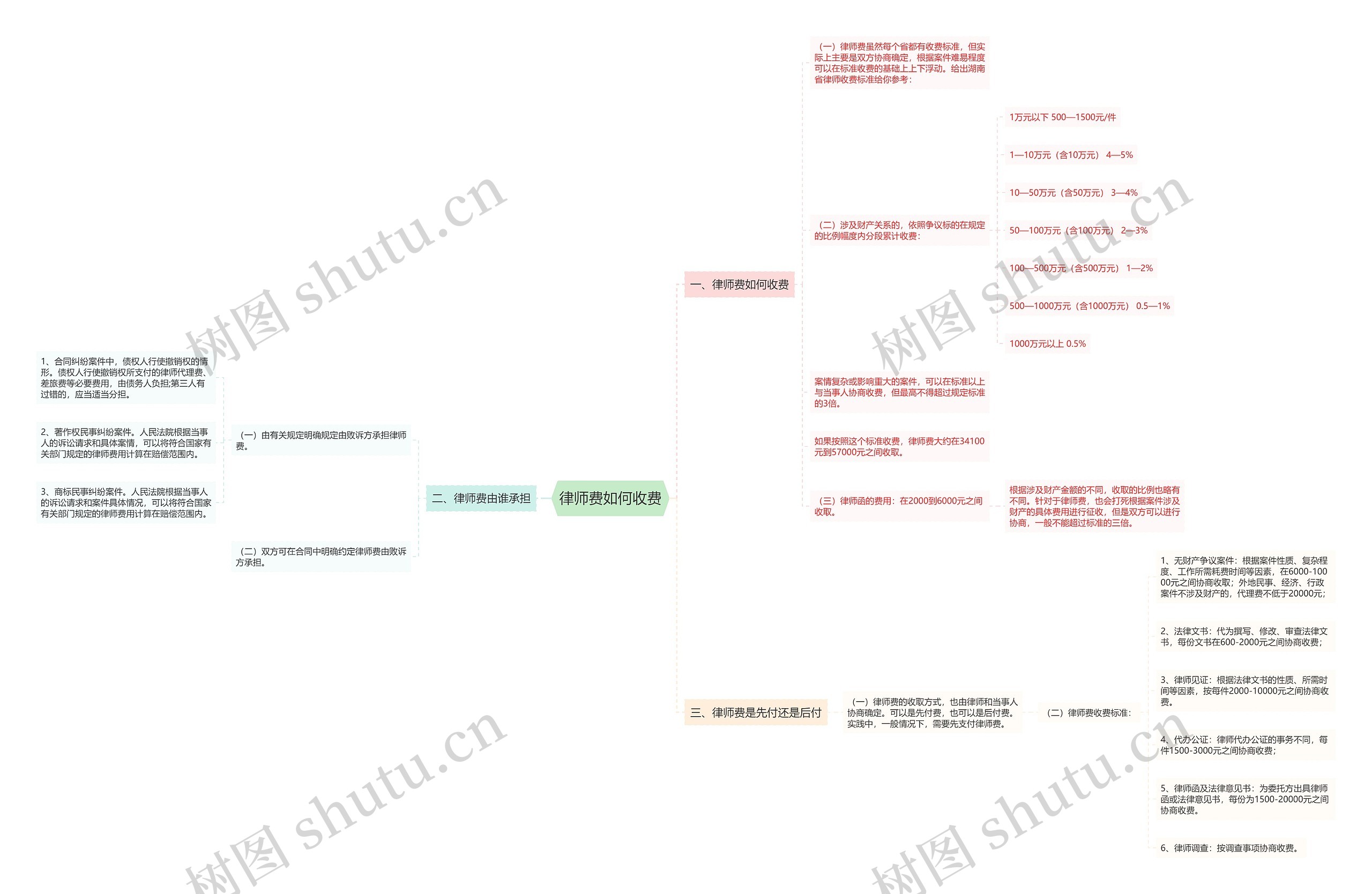 树图思维导图提供《律师费如何收费》在线思维导图免费制作,点击“编辑”按钮,可对《律师费如何收费》进行在线思维导图编辑,本思维导图属于思维导图模板主题,文件编号是:38d2069c6f899ba321504399b8ae62d5