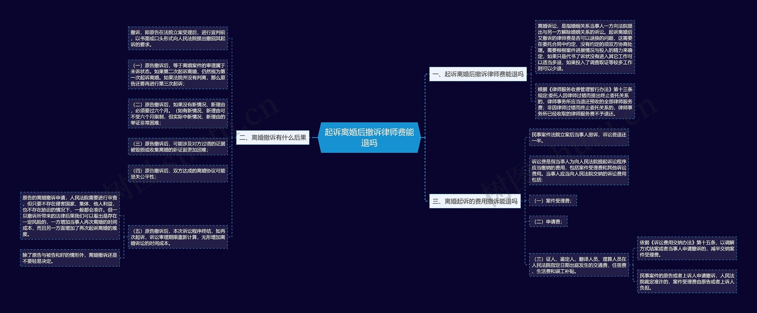 树图思维导图提供《起诉离婚后撤诉律师费能退吗》在线思维导图免费制作,点击“编辑”按钮,可对《起诉离婚后撤诉律师费能退吗》进行在线思维导图编辑,本思维导图属于思维导图模板主题,文件编号是:123bae810cf619e485ff661c83a1a794