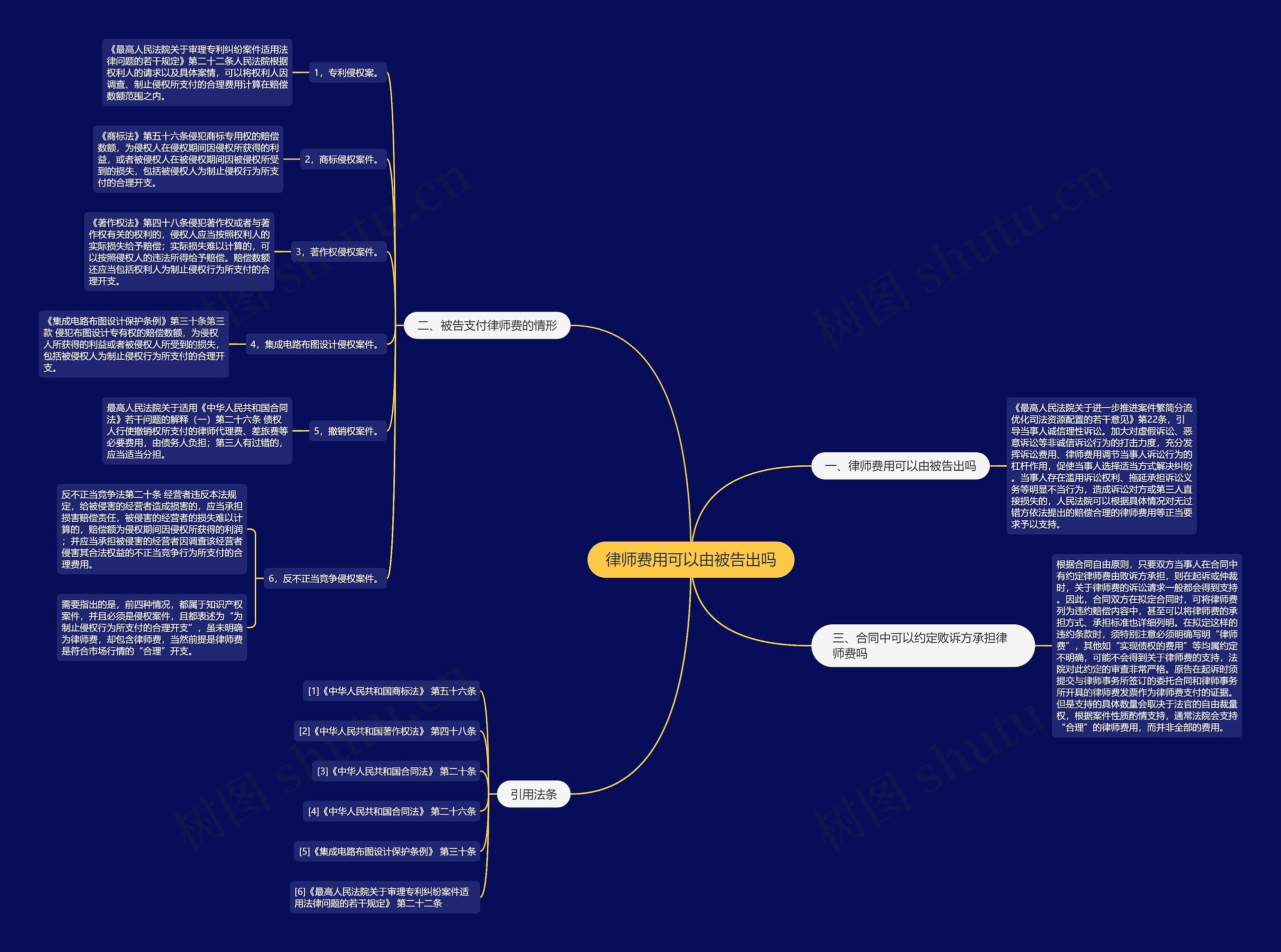 树图思维导图提供《律师费用可以由被告出吗》在线思维导图免费制作,点击“编辑”按钮,可对《律师费用可以由被告出吗》进行在线思维导图编辑,本思维导图属于思维导图模板主题,文件编号是:334cbdca6997d8324a1a9ffbb1c9d077