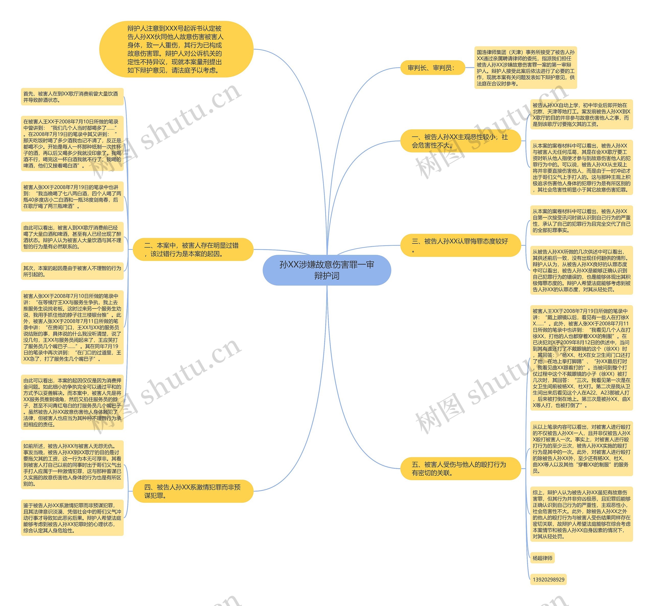 由此可以看出,本案的起因仅仅是因为消费押金问题。如此细小的争执完全可以通过平和的方式予以妥善解决。而本案中,被害人先是将XX服务员推到墙角,然后又掐住服务员的脖子,甚至不问青红皂白的打服务员几个嘴巴子。虽然被告人孙XX故意伤害他人身体触犯了法律,但被害人也应当为其种种不理智行为承担相应的责任。
