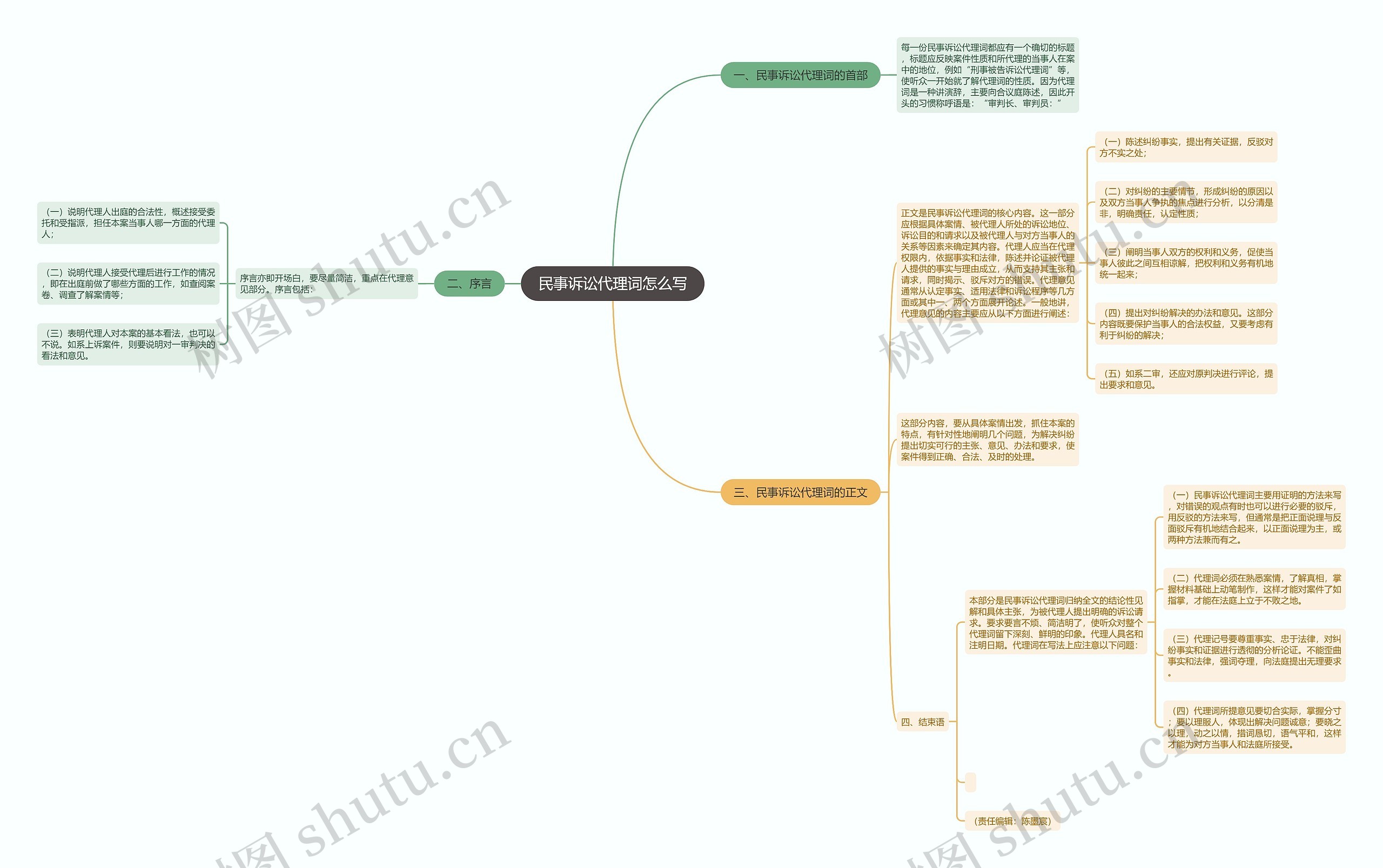 树图思维导图提供《民事诉讼代理词怎么写》在线思维导图免费制作,点击“编辑”按钮,可对《民事诉讼代理词怎么写》进行在线思维导图编辑,本思维导图属于思维导图模板主题,文件编号是:c6a6a0a04faee0fa80d1c51cf2a79f4c