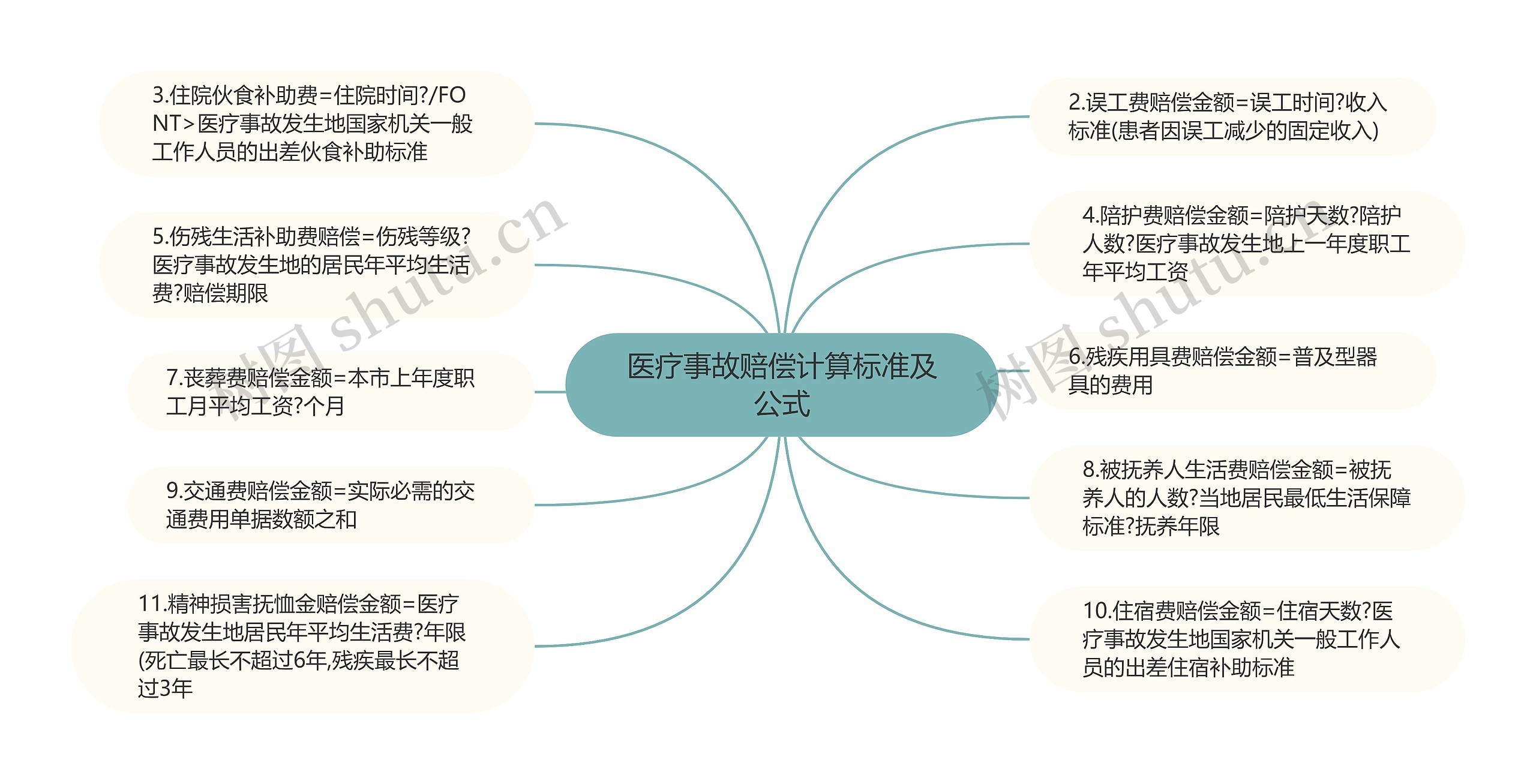 树图思维导图提供《医疗事故赔偿计算标准及公式》在线思维导图免费制作,点击“编辑”按钮,可对《医疗事故赔偿计算标准及公式》进行在线思维导图编辑,本思维导图属于思维导图模板主题,文件编号是:ee591972097fbd3b5f686eac63339aed