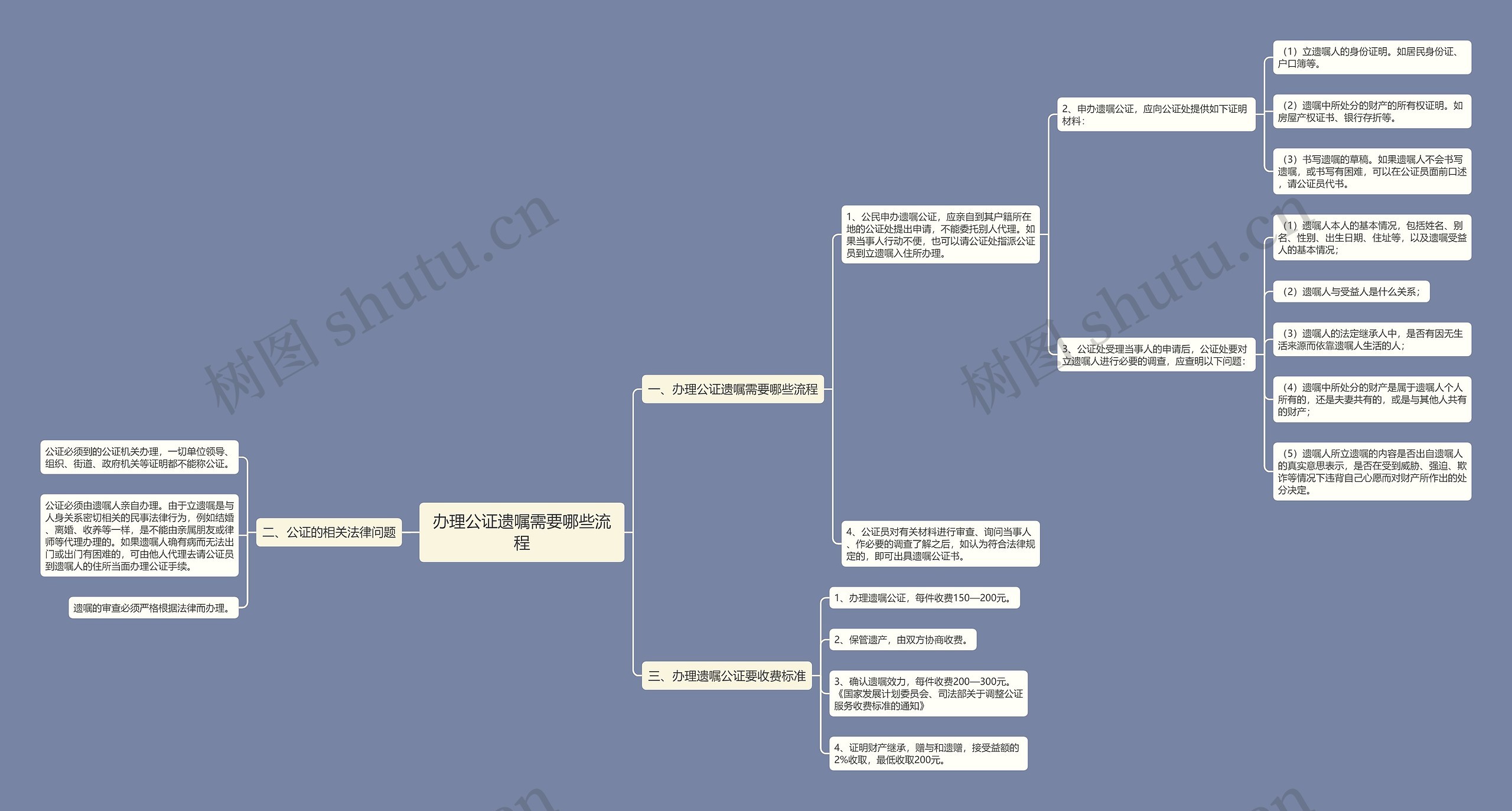 树图思维导图提供《办理公证遗嘱需要哪些流程》在线思维导图免费制作,点击“编辑”按钮,可对《办理公证遗嘱需要哪些流程》进行在线思维导图编辑,本思维导图属于思维导图模板主题,文件编号是:b78c386d3dbea096c2649532b50869ae