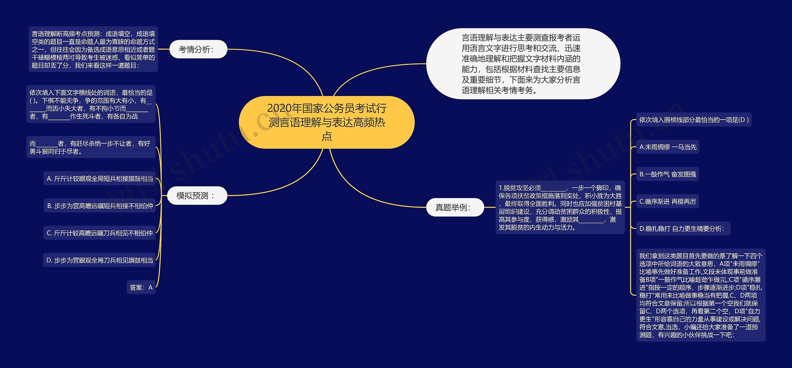 树图思维导图提供《2020年国家公务员考试行测言语理解与表达高频热点》在线思维导图免费制作,点击“编辑”按钮,可对《2020年国家公务员考试行测言语理解与表达高频热点》进行在线思维导图编辑,本思维导图属于思维导图模板主题,文件编号是:a27f6ec40f425b3e92f4daa9eb434ffb