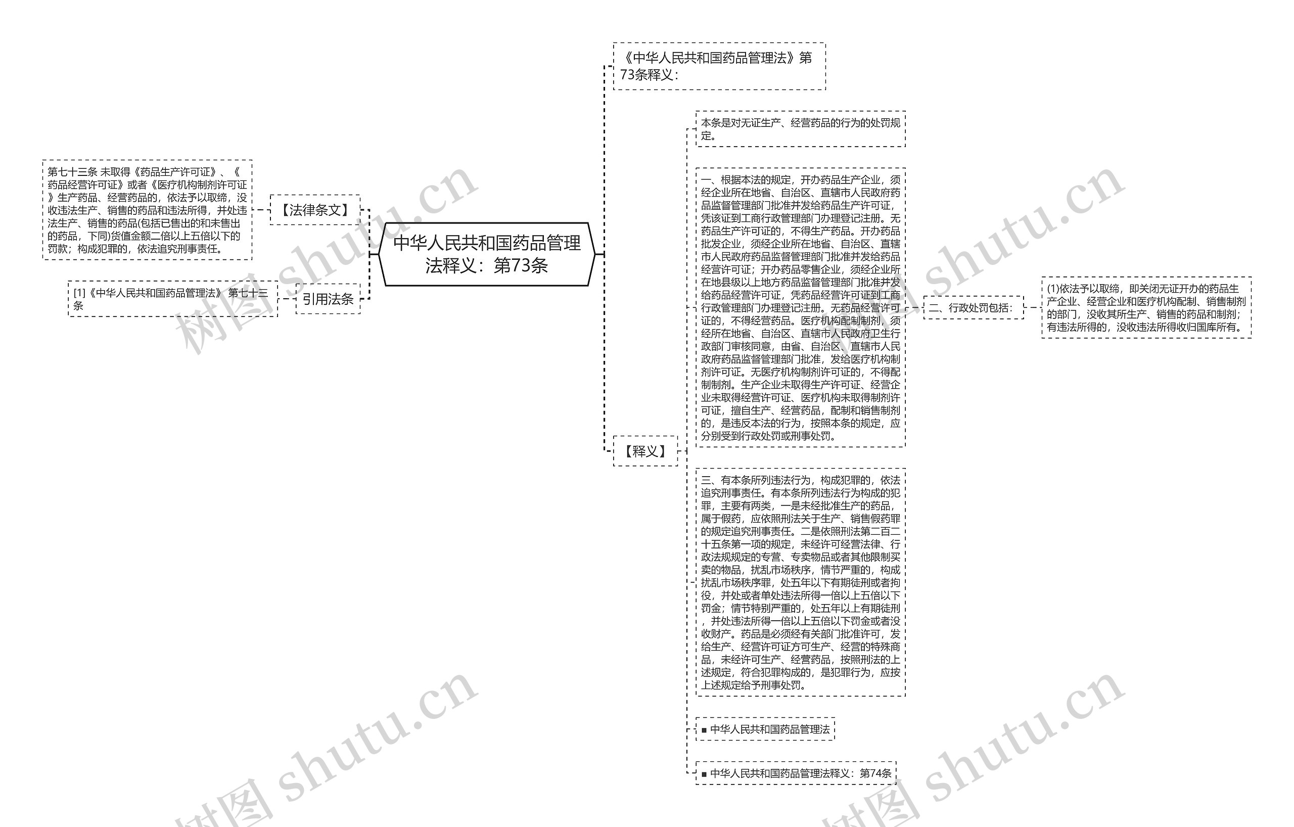 核心内容:《中华人民共和国药品管理法》第73条应该怎样释义呢?药品管理法第73条规定的是对无证生产、经营药品的行为的处罚。树图网编辑为您详细介绍关于药品管理法第73条的释义。