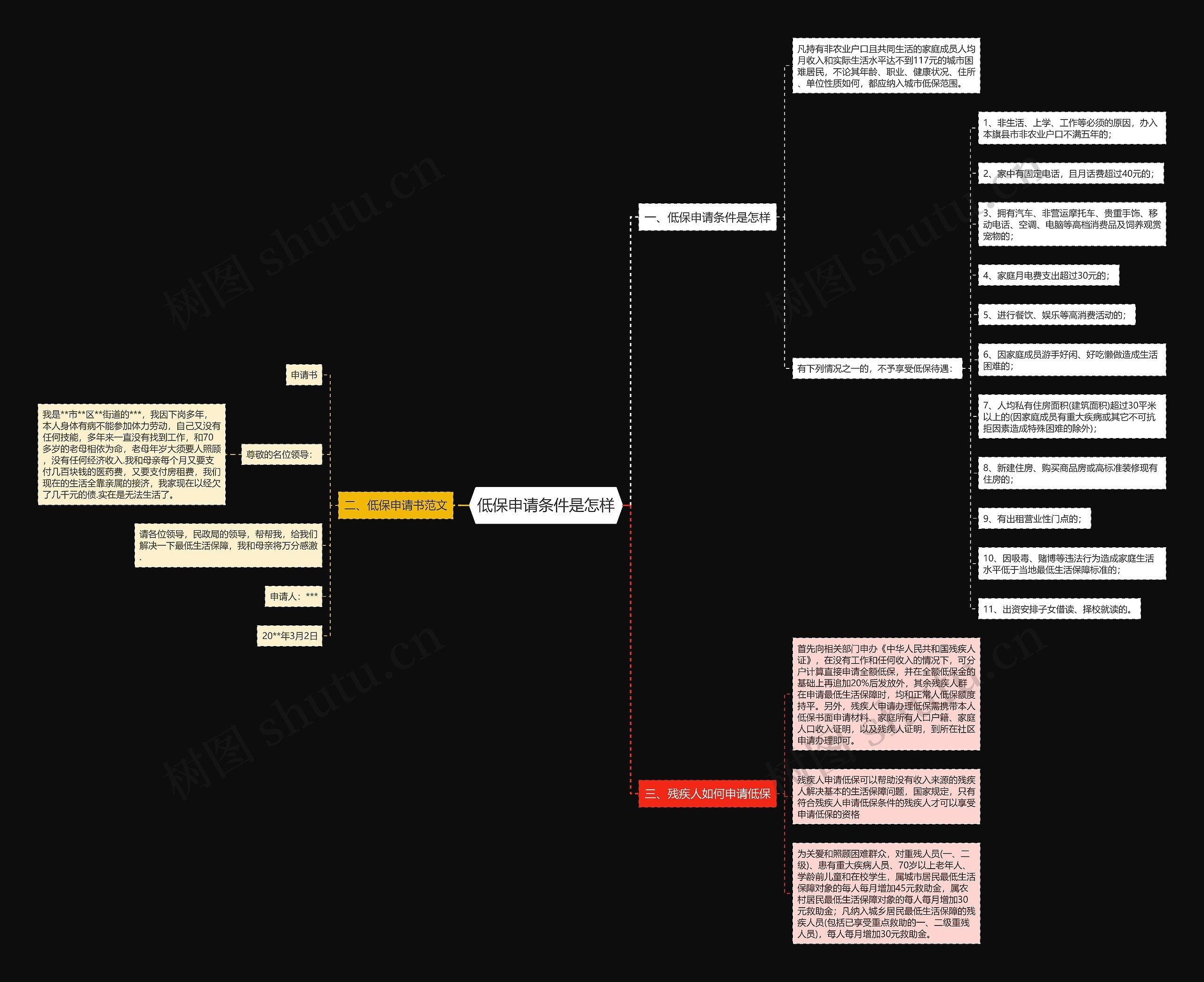 树图思维导图提供《低保申请条件是怎样》在线思维导图免费制作,点击“编辑”按钮,可对《低保申请条件是怎样》进行在线思维导图编辑,本思维导图属于思维导图模板主题,文件编号是:dce0b65a962823773a6af66b35836d27