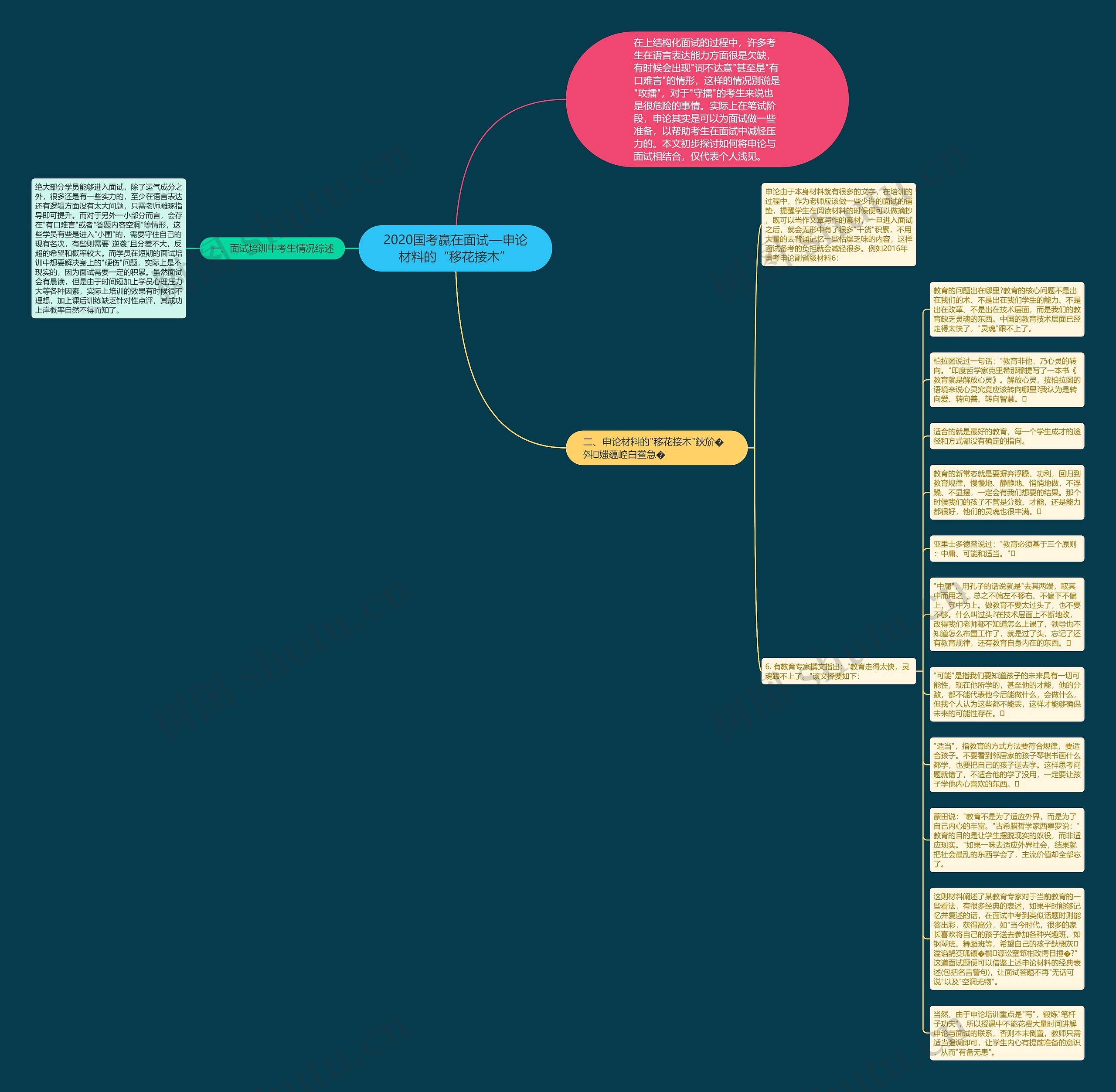 这则材料阐述了某教育专家对于当前教育的一些看法,有很多经典的表述,如果平时能够记忆并复述的话,在面试中考到类似话题时则能答出彩,获得高分,如"当今时代,很多的家长喜欢将自己的孩子送去参加各种兴趣班,如钢琴班、舞蹈班等,希望自己的孩子鈥槻灰湓谄鹋芟呱镶�櫍源讼窒筇柑改愕目捶�?"这道面试题便可以借鉴上述申论材料的经典表述(包括名言警句),让面试答题不再"无话可说"以及"空洞无物"。