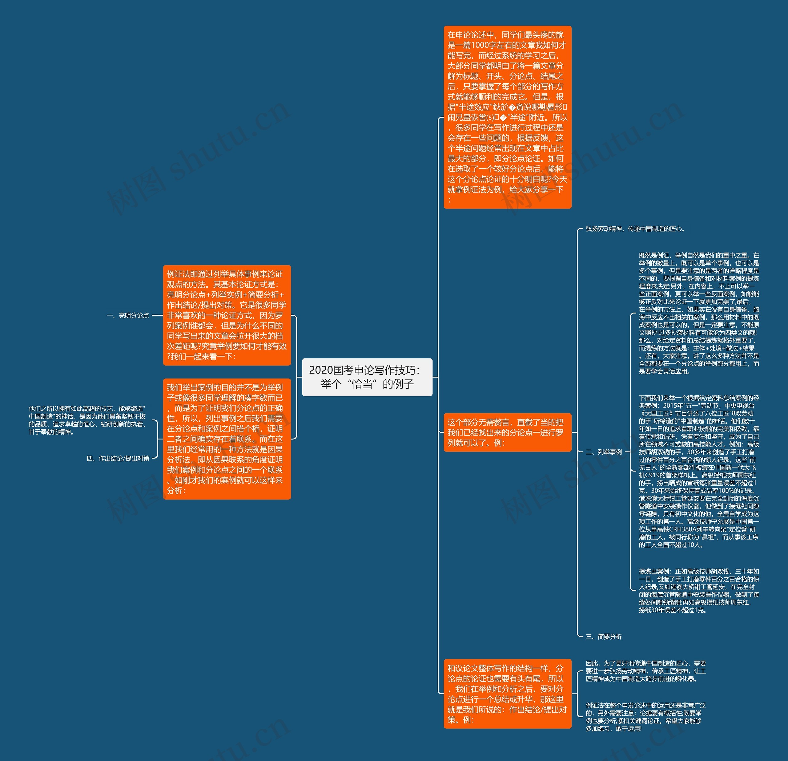 既然是例证,举例自然是我们的重中之重。在举例的数量上,既可以是单个事例,也可以是多个事例,但是要注意的是两者的详略程度是不同的,要根据自身储备和对材料案例的提炼程度来决定;另外,在内容上,不止可以举一些正面案例,更可以举一些反面案例,如能能够正反对比来论证一下就更加完美了;最后,在举例的方法上,如果实在没有自身储备,脑海中反应不出相关的案例,那么用材料中的既成案例也是可以的,但是一定要注意,不能原文照抄!过多抄袭材料有可能沦为四类文的哦!那么,对给定资料的总结提炼就格外重要了,而提炼的方法就是:主体+处境+做法+结果。还有,大家注意,讲了这么多种方法并不是全部都要在一个分论点的举例部分都用上,而是要学会灵活应用。