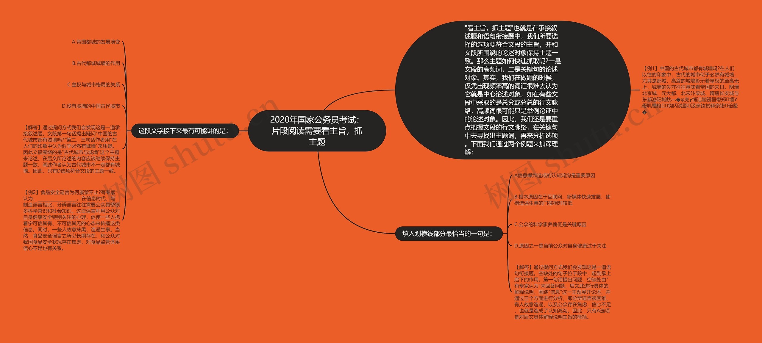 树图思维导图提供《2020年国家公务员考试:片段阅读需要看主旨,抓主题》在线思维导图免费制作,点击“编辑”按钮,可对《2020年国家公务员考试:片段阅读需要看主旨,抓主题》进行在线思维导图编辑,本思维导图属于思维导图模板主题,文件编号是:cd124fdf096ab1a6138f817f84711020
