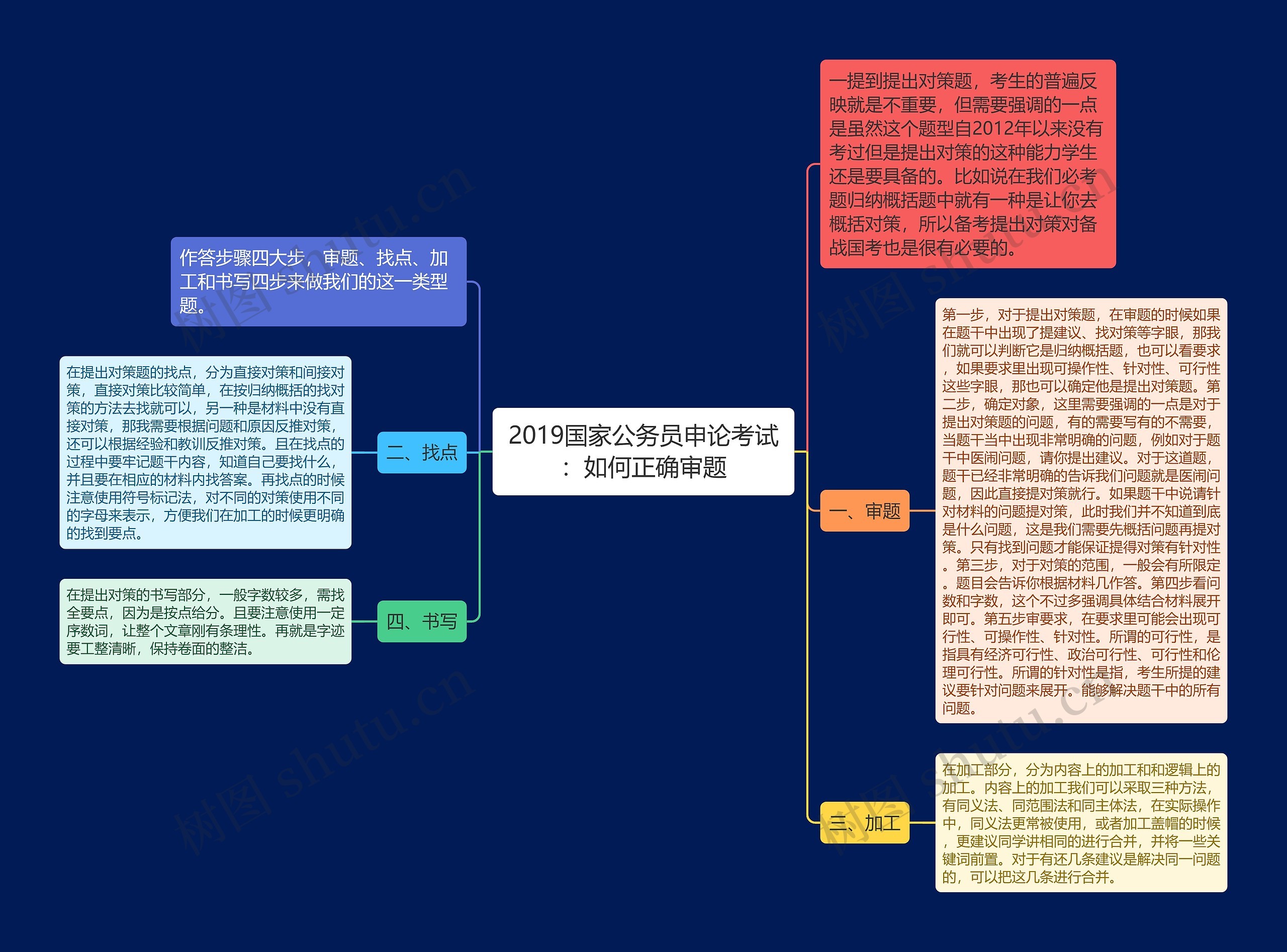 树图思维导图提供《2019国家公务员申论考试:如何正确审题》在线思维导图免费制作,点击“编辑”按钮,可对《2019国家公务员申论考试:如何正确审题》进行在线思维导图编辑,本思维导图属于思维导图模板主题,文件编号是:6149d1bd0d17c9dd8483cdf2fbba450e